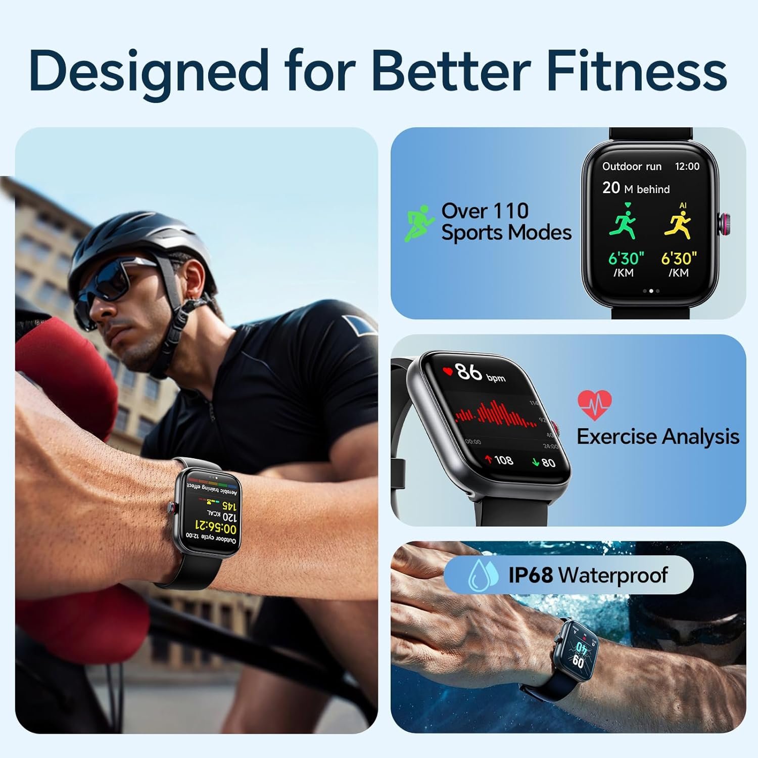 【Alexa and AI Voice Built-In】Our fitness watch offers dual smart access, featuring built-in Alexa and an AI voice assistant. Take control of your Alexa-enabled home devices and access various functions. Also, the smartwatch can wake up your phone’s smart voice assistant like siri, google assistant, making calls and searching for information etc. Just speak to the watch to ask questions, control music playback, check the weather, set alarms and timers and so on, making your life to be smarter.
