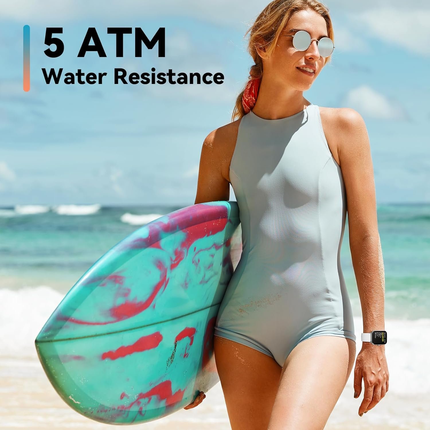 πRunning and 5ATM Waterproof: Achieve your fitness goals with over 100 sports modes(Run, trail run, bike, swim and so on) tailored to your workouts.Running watch for women tracks Calories burned, Step count, Exercise Time, and Distance for a wide range of activities.Plus, Activity trackers and smartwatches are built to withstand water up to 5 ATM, making it your ideal workout partner.