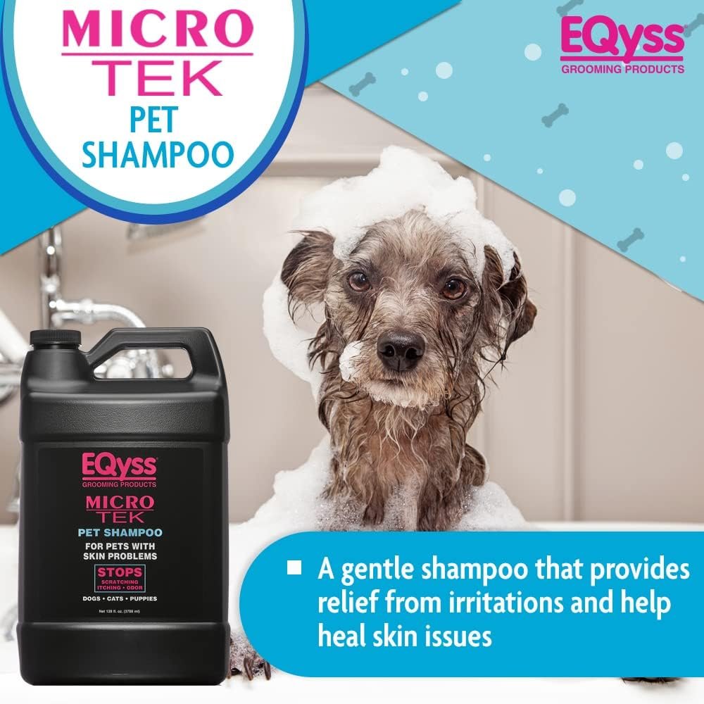 Soothe Dry, Irritated Skin Fast: EQyss Micro-Tek Pet Shampoo is fast-acting to help your dog, cat, puppy, or kitten stop scratching, itching, biting, or licking hot spots in as little as 1 bath! It provides a healthy environment for healing and is more effective than Oatmeal, Coal Tar, or Tea Tree shampoos.