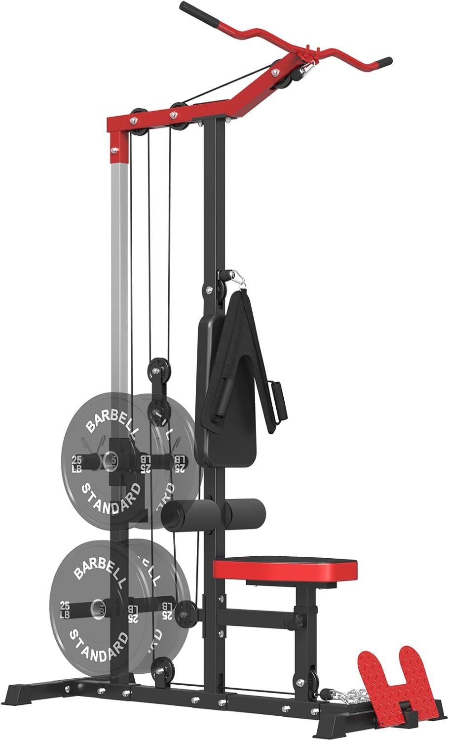 【2-In-1 Versatility】One station, two dynamic upper body workouts. The G1 Lat Pulldown enables users to instantly shift from seated lat pulldowns and triceps pushdowns to a low row, simply by switching their body position. The leg hold-down attachment provides you suitable legroom during sitting training. This makes it an efficient machine for a garage gym or for multiple athletes moving through their regimens in a larger training facility.