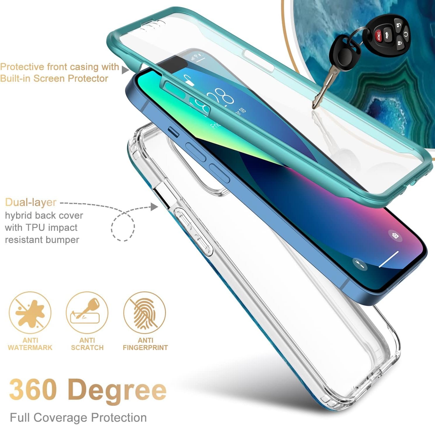 Military Grade Rugged Cover: Our case offers military-grade durability to protect your iPhone 13 from accidental drops, bumps, and shocks. With its rugged construction, it provides reliable defense from impacts and offers peace of mind.