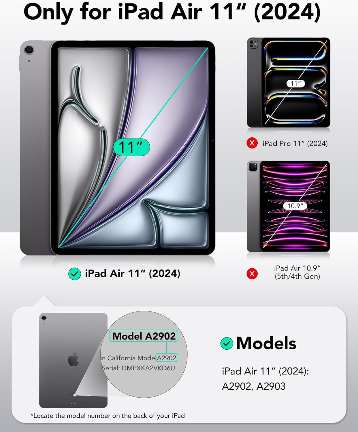 Compatibility: only for iPad Air 11″ (2024); models: A2902, A2903, not compatible with any other iPad models