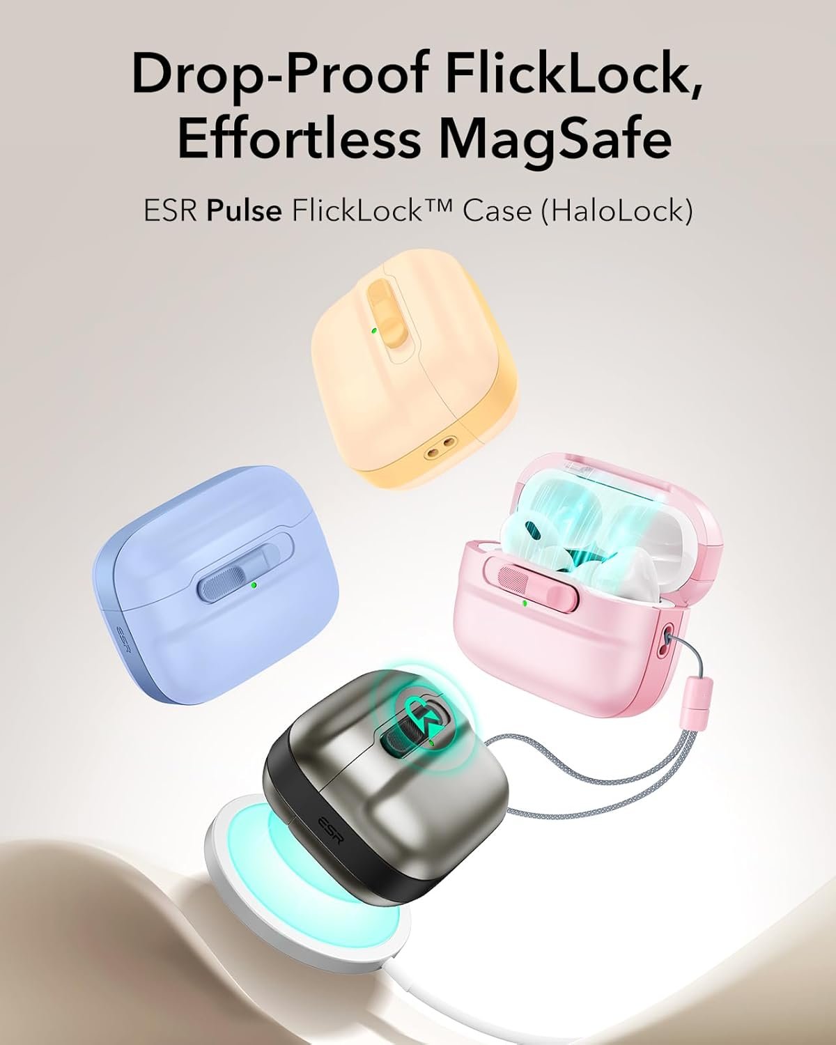 Drop-Proof Lid Lock: strong magnets with 700 g of holding force in the top and bottom of the lid and an internal latch keep your AirPods locked safely inside so they won’t pop out if dropped