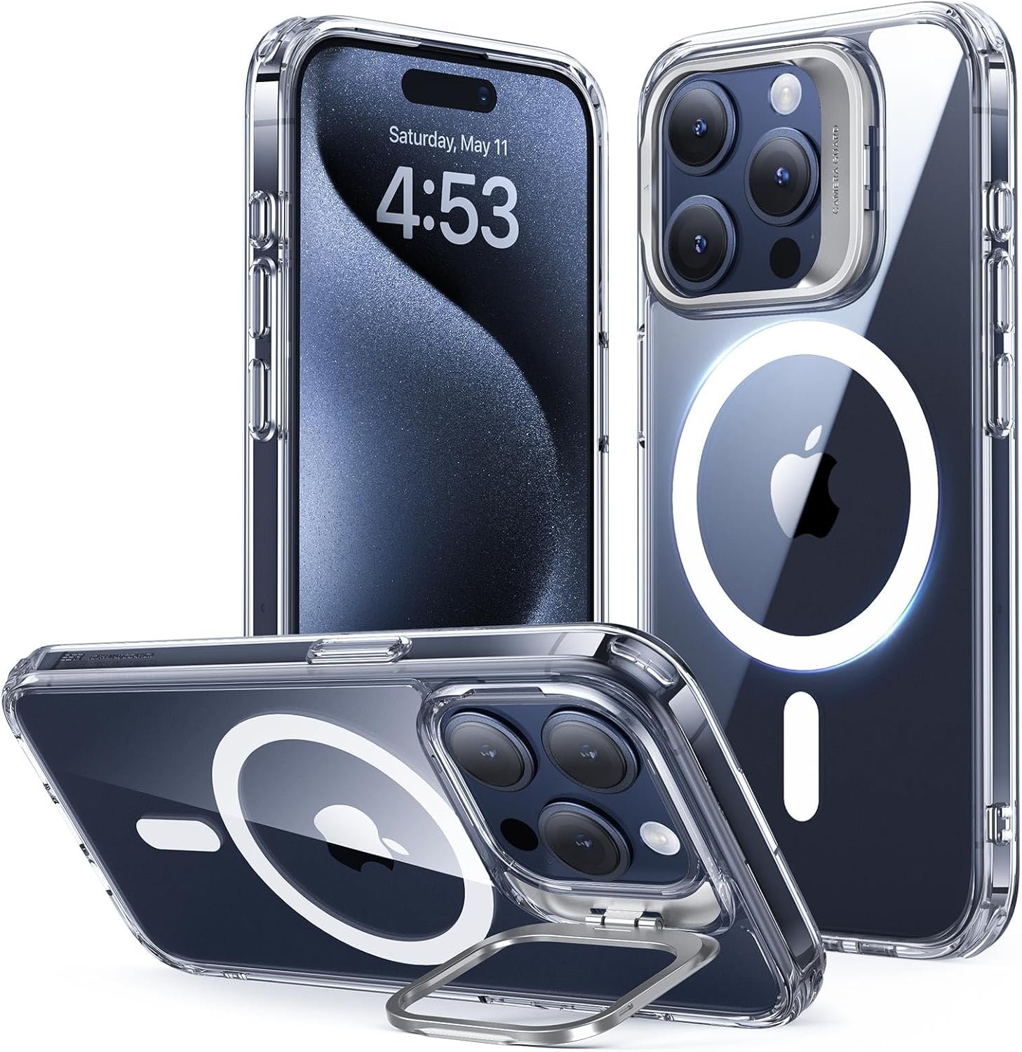Adjustable Stash Stand: positioned around camera frame to stay hidden when folded away while keeping MagSafe ring 100% unobstructed; enjoy a freely adjustable and stable view for watching shows whenever, wherever