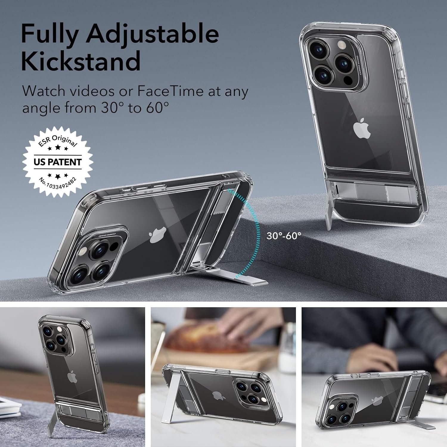 Highly Adjustable Kickstand: patented design provides you with the freedom to choose any angle you want up to 60 degrees while durable hinge is lab tested to maintain functionality after more than 3,000 uses