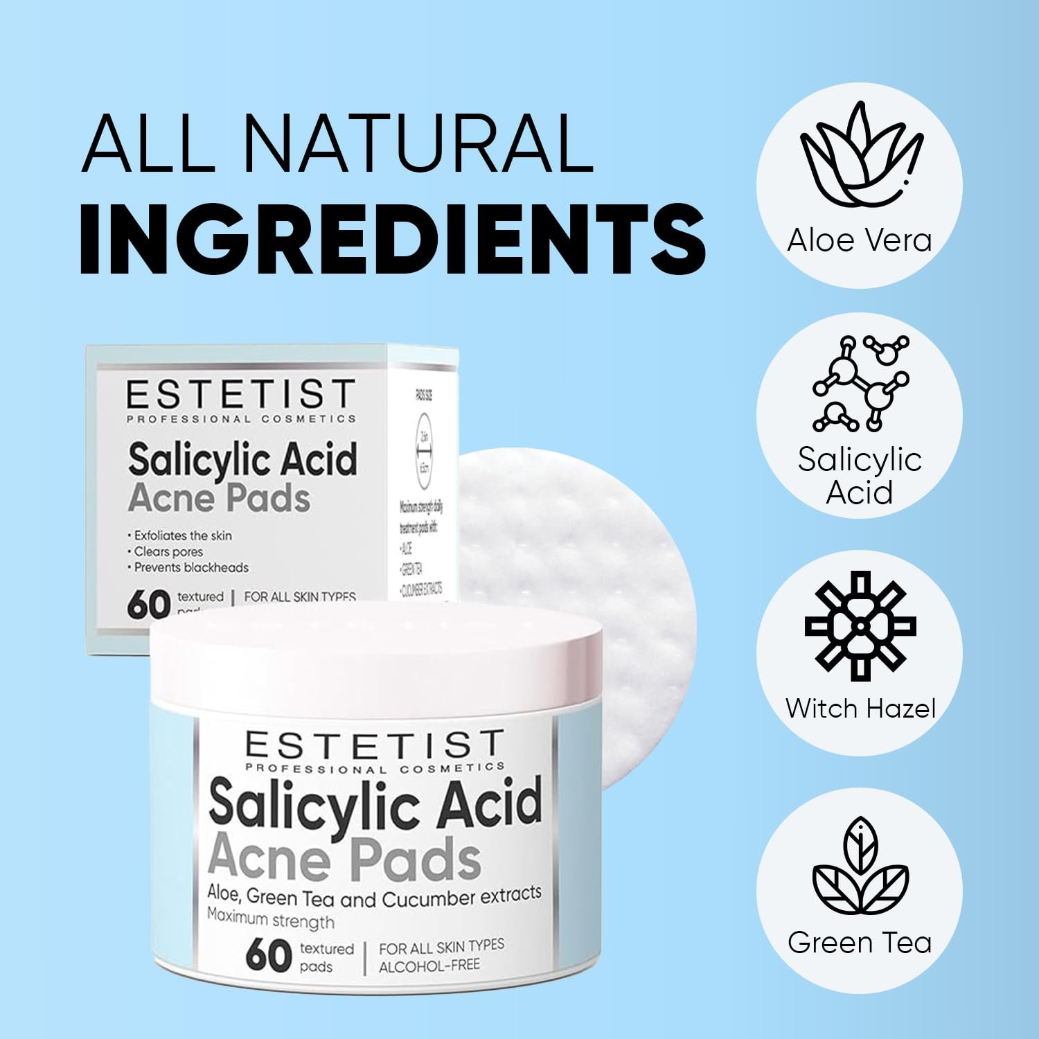 Effective Acne Care: Estetist’s salicylic acid pads are expertly formulated to penetrate pores and combat acne breakouts, ensuring your skin remains clear and blemish-free