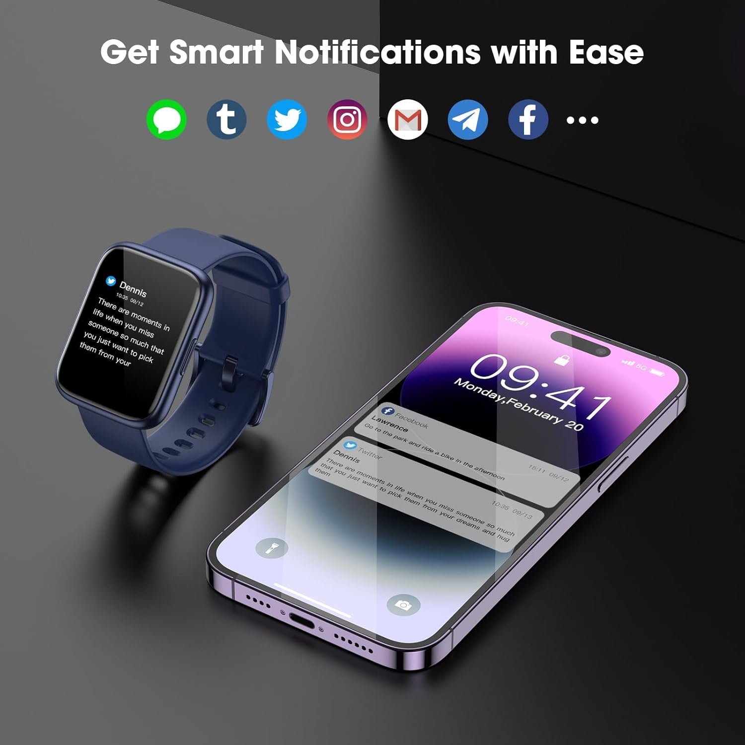 【Get Reminder from Your Wrist】Smart watches receive call and SMS/App notifications(Can’t answer or make phone calls), ensuring you stay informed and never miss vital updates. In addition, they have sedentary reminders, drink water reminders, alarm clocks, stopwatches, timers and more to meet your daily needs.