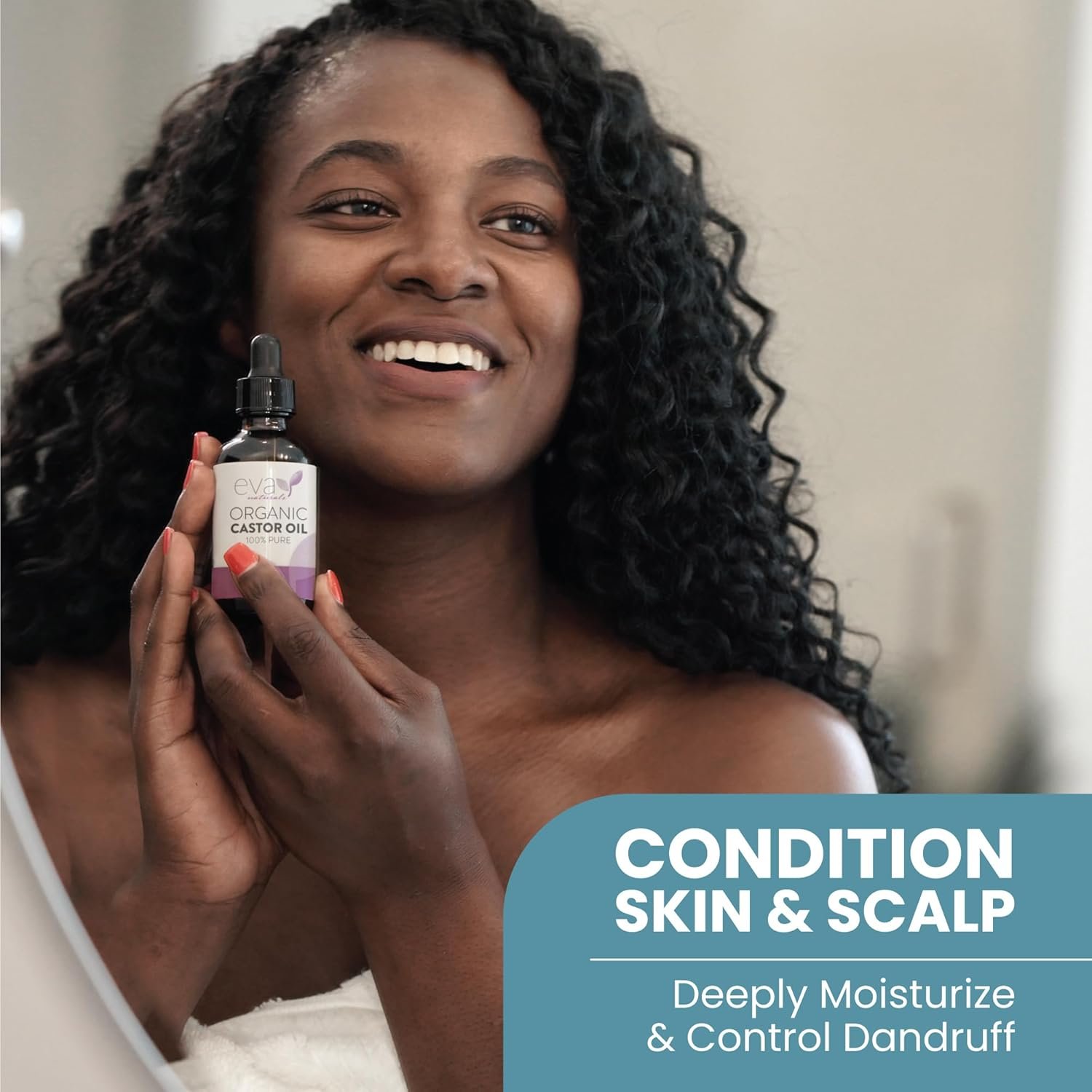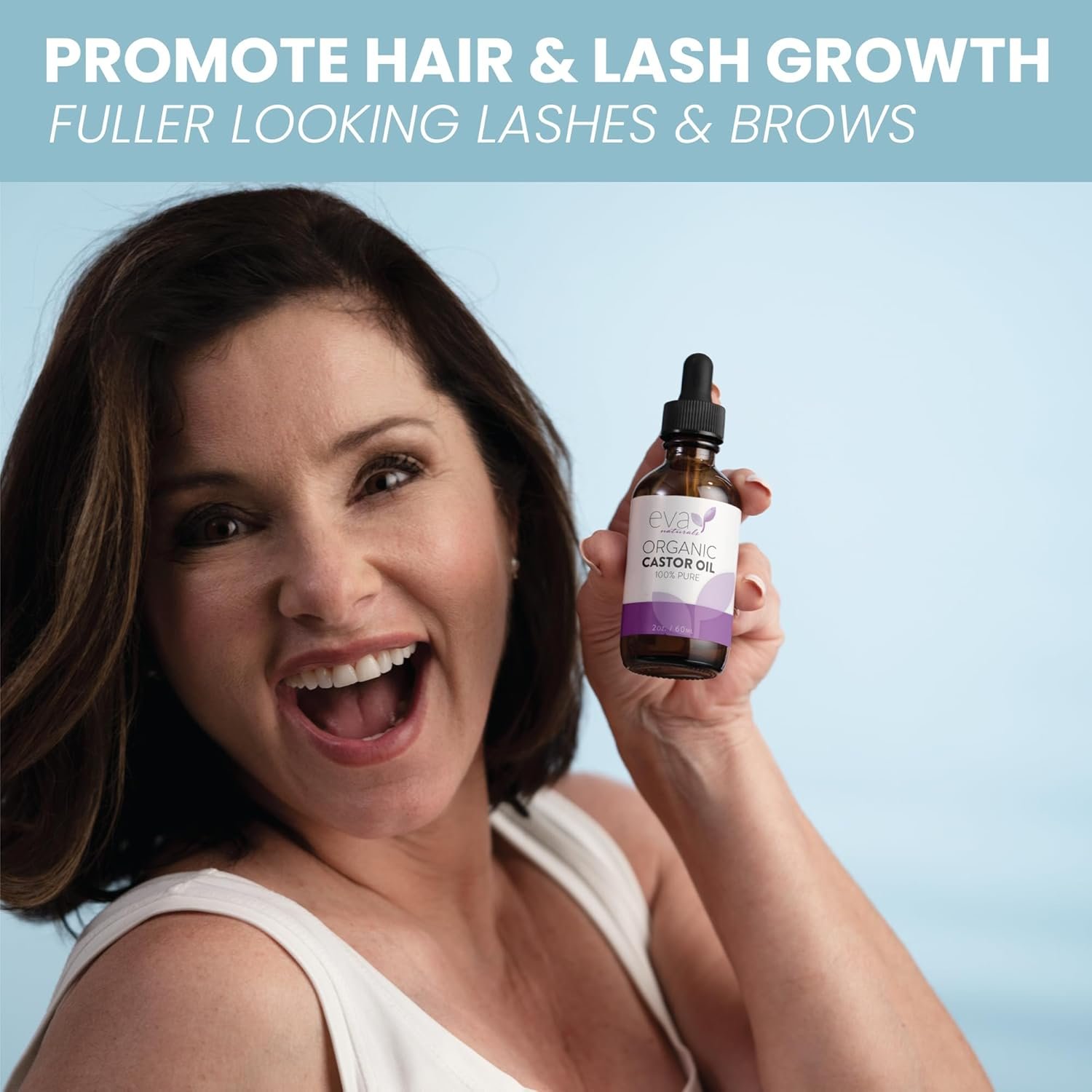 Eva Naturals Castor Oil (2oz) – Promotes Hair, Lash and Brow Growth, Diminishes Wrinkles and Anti-Aging – 100% Pure and Organic for Hair Treatment