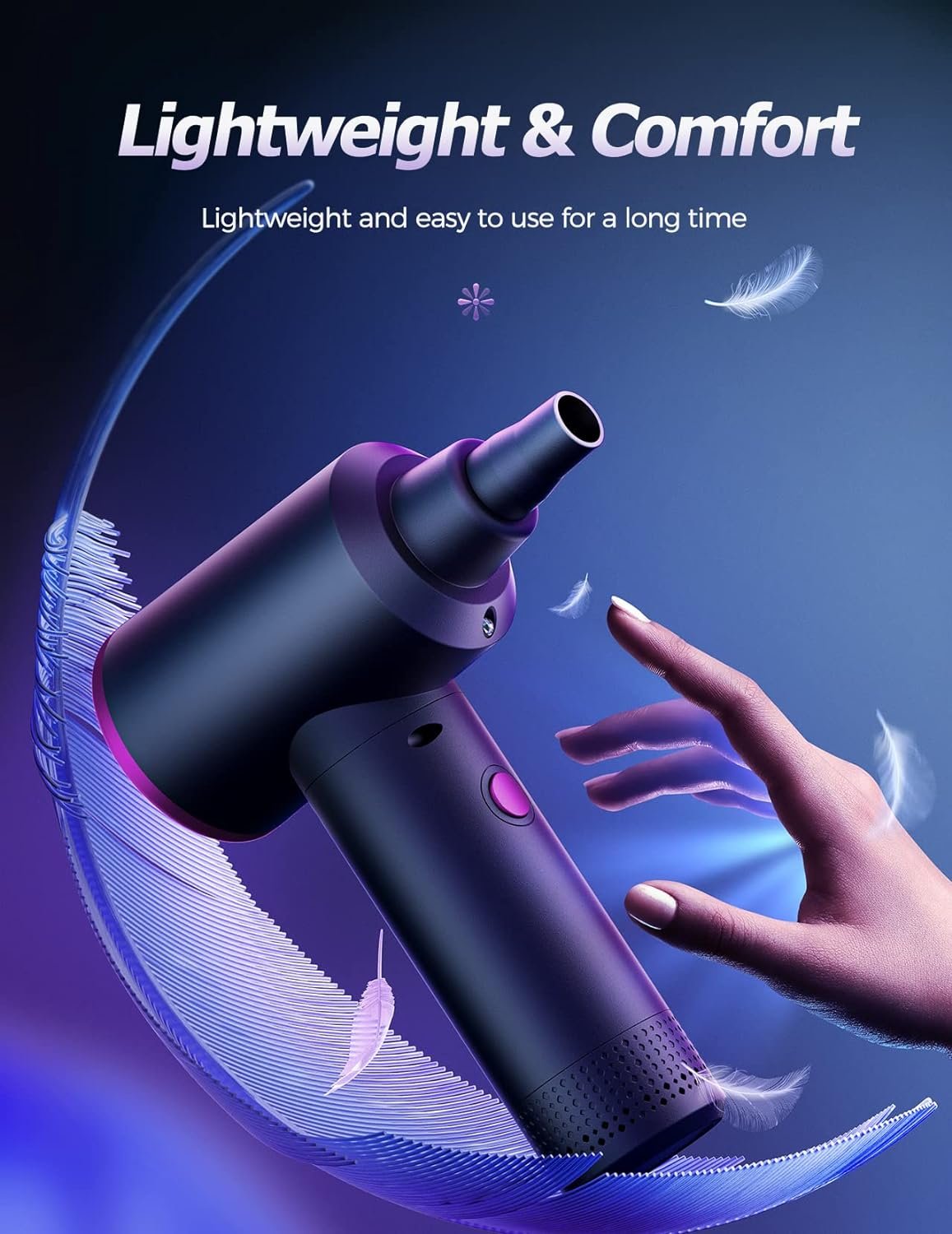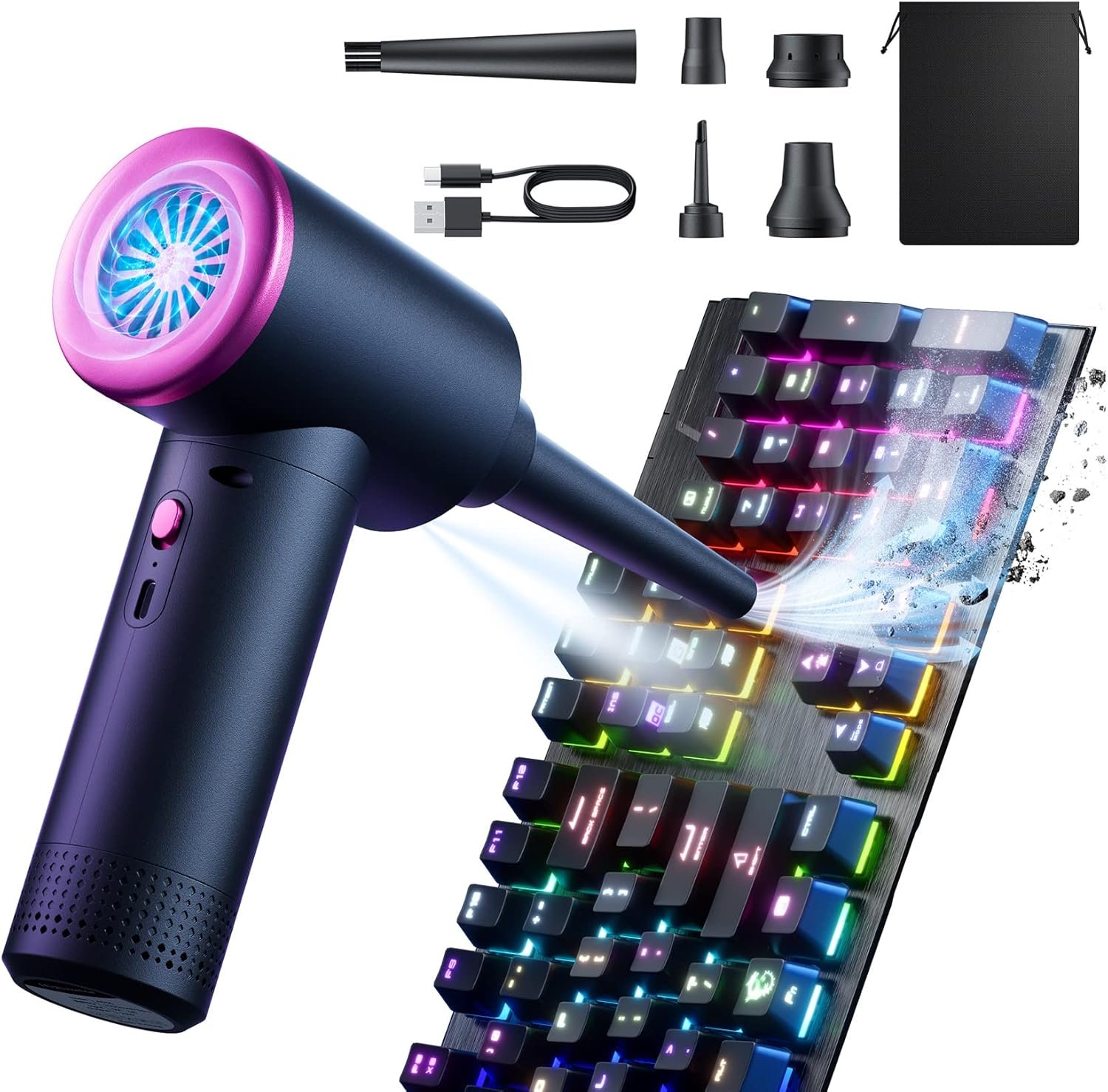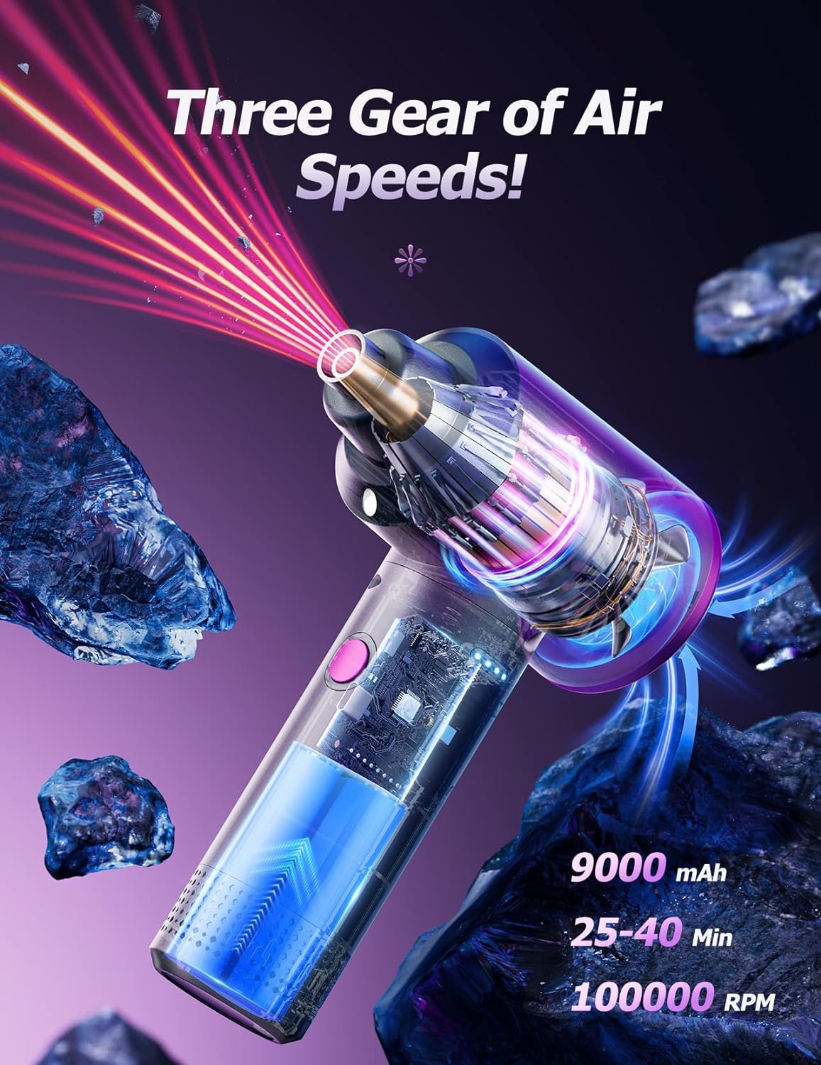 3 Wind Speeds – The air duster features a 100000 RPM motor. Simply turn on the power and you can switch between 3 different air speeds with button. Low energy consumption and low noise while retaining powerful airflow.