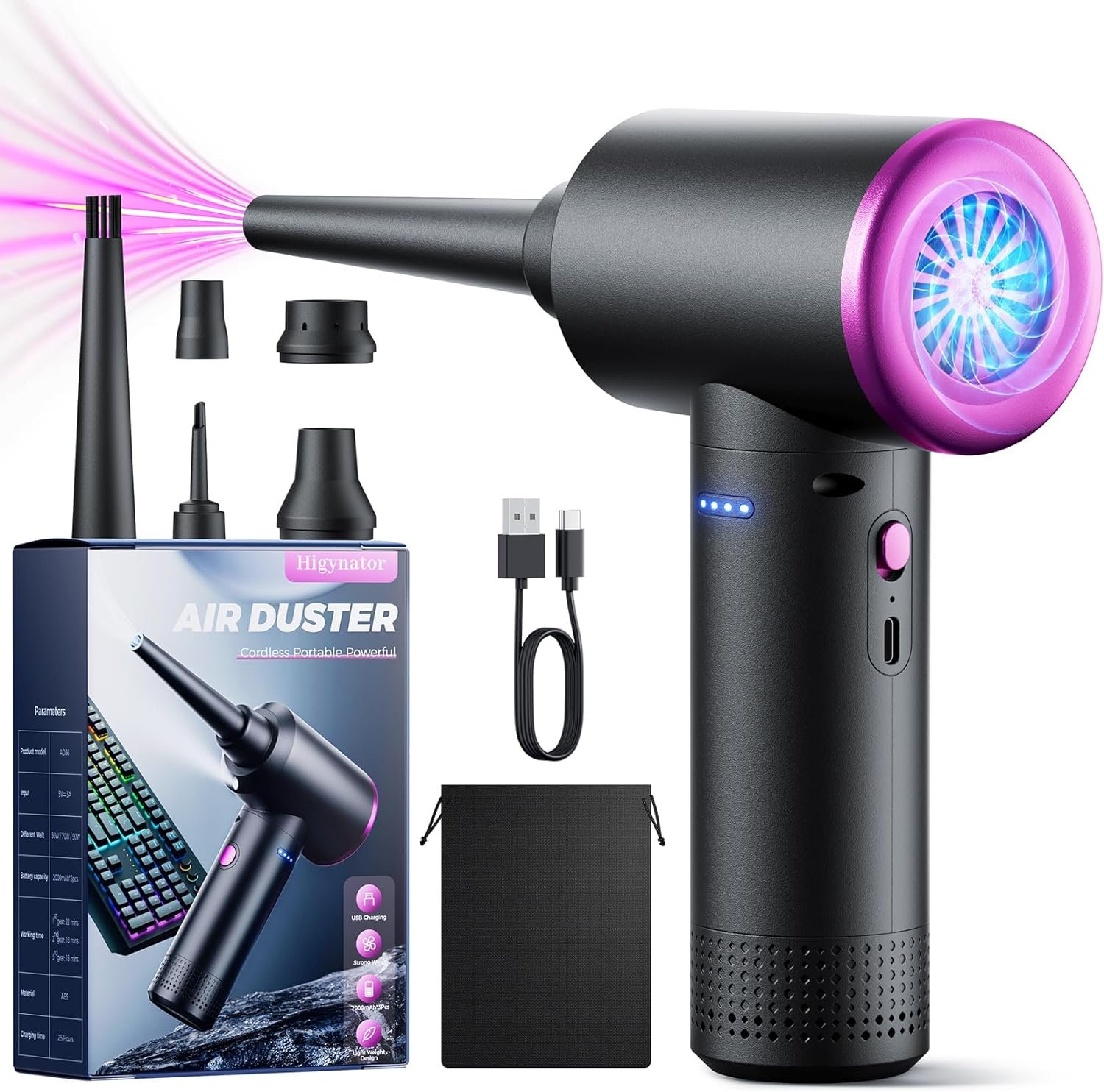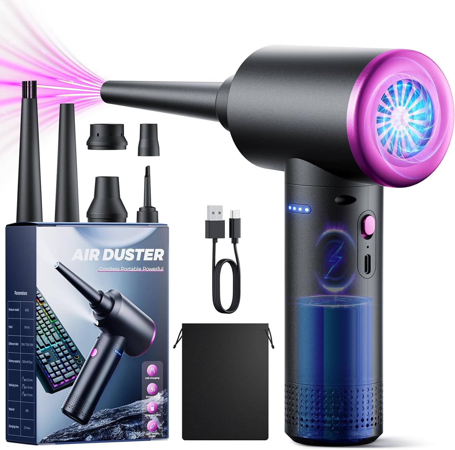 USB Charging Design – Compressed air dusters can be used as an alternative to canned air and can be recharged and used repeatedly. Built-in 9000mAh battery, which can run continuously for 20-30 minutes.