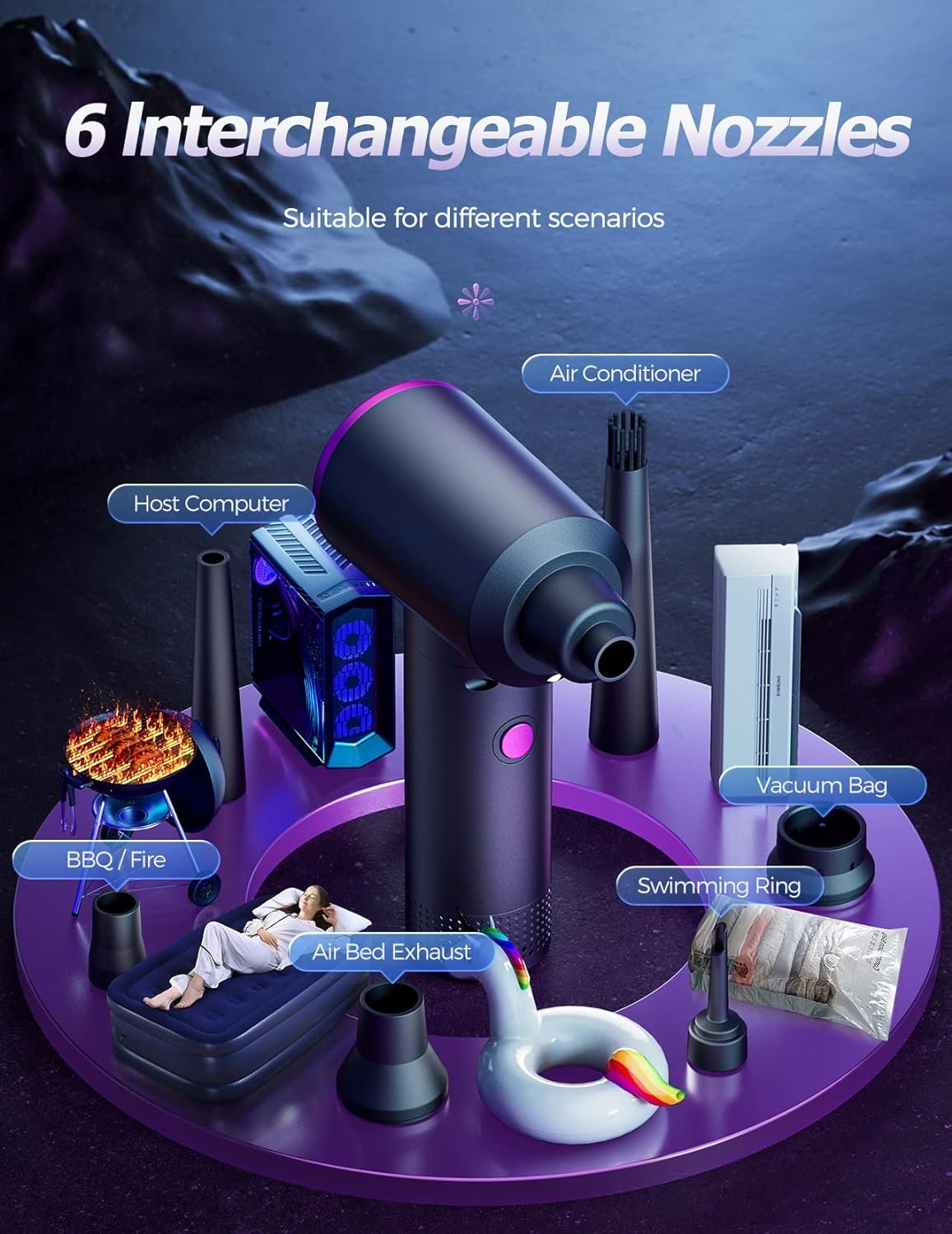 Various Nozzles – The compressed air duster is equipped with 6 different nozzles, designed for cleaning various areas. Air duster can also be used to inflate swimming rings, bouncy beds, yoga balls, and more. It’s the perfect choice for household, office, and car dust cleaning.