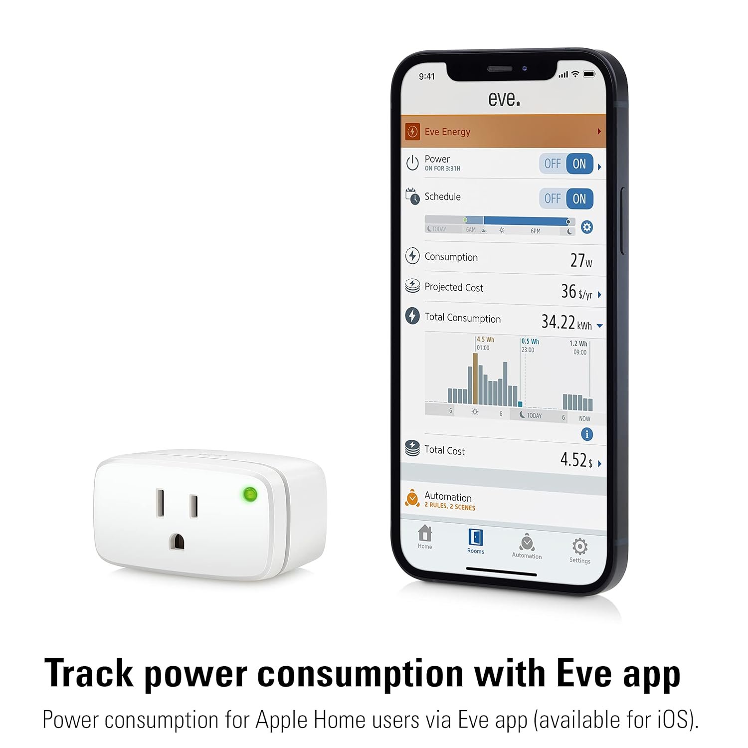 Eve Energy requires iOS/iPadOS 16.4 (or later) or Android 8.1 (or later) plus a hub of your chosen platform:
