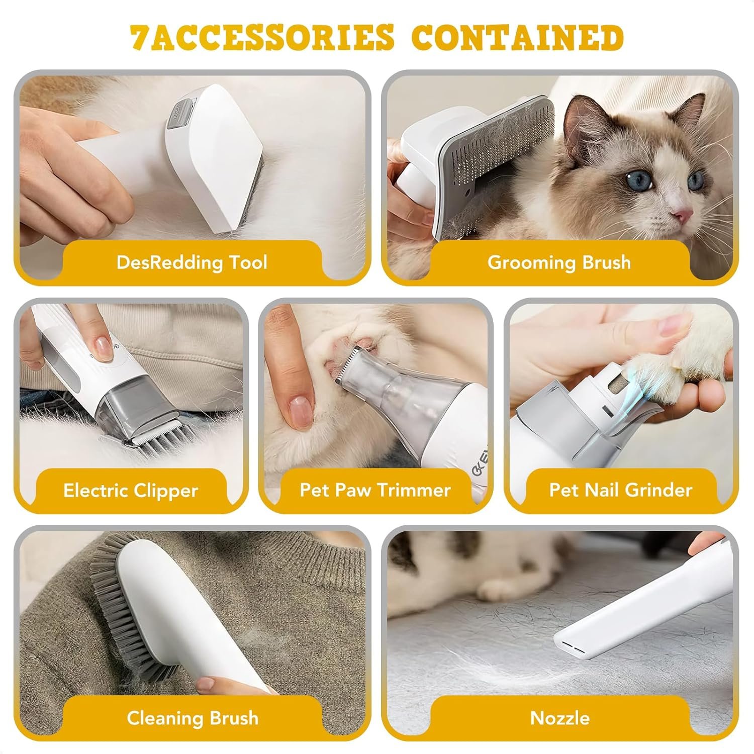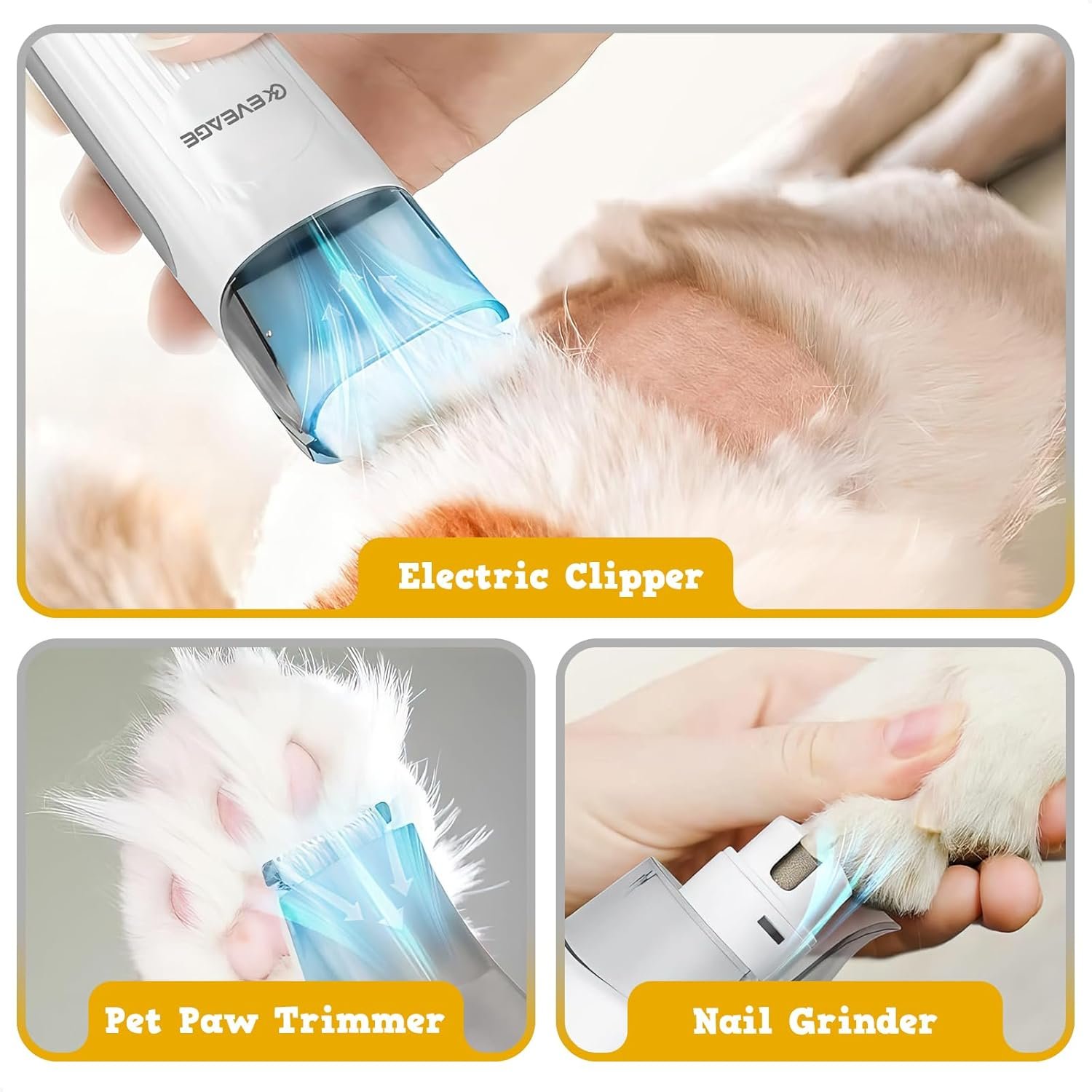 🐶🐱【7 in 1 Pro Pet Grooming Kit,Keep the House Tidy】eveage pet grooming kit with vacuum make home grooming easy.The grooming brush and the deshedding tool gently remove loose hair and making pet hair shiny and smooth while eliminating tangles. Electric clipper, dog paw trimmer and dog nail grinder provides excellent cutting. Give your pet a best grooming experience. Nozzle head and Cleaning brush can be used for collecting pet hair falling on the carpet, sofa and floor.