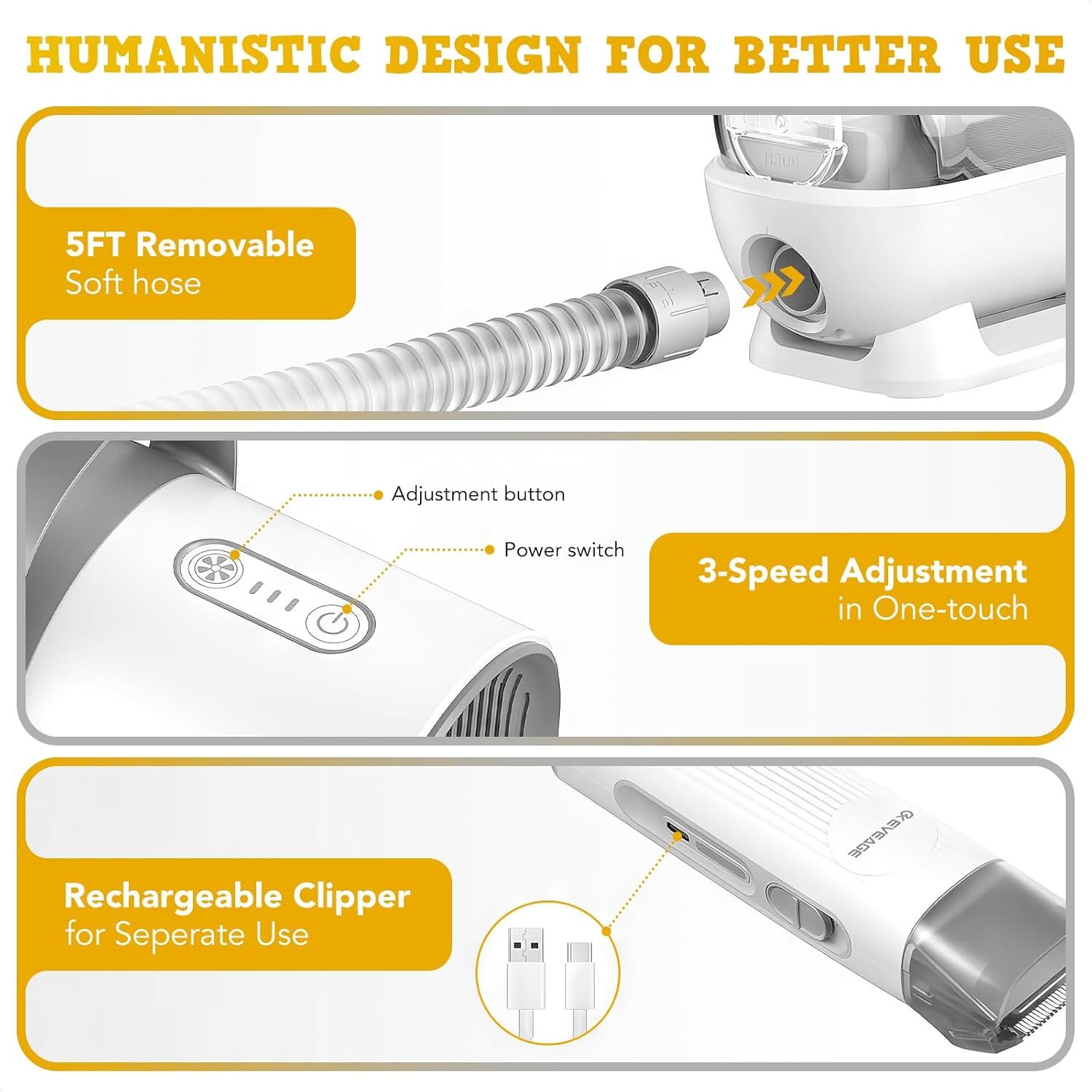 🐶🐱【Low Noise Design】Our pet grooming vacuum’s noise only 60 dB. 3 adjustable suction levels to choose ,making your pet dogs feel relaxed and not be scared during grooming.