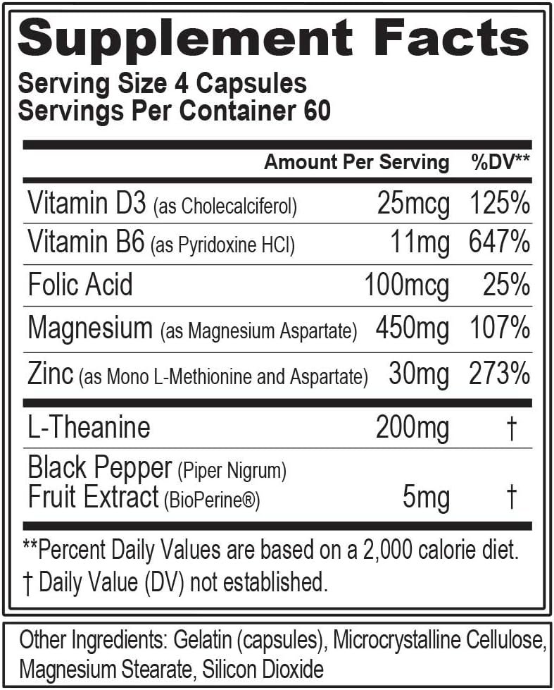 Advanced Recovery Formula – Unlike basic ZMA supplements for men our zinc and magnesium supplement also features Folic acid Theanine and Black pepper extract for enhanced recovery and sleep benefits