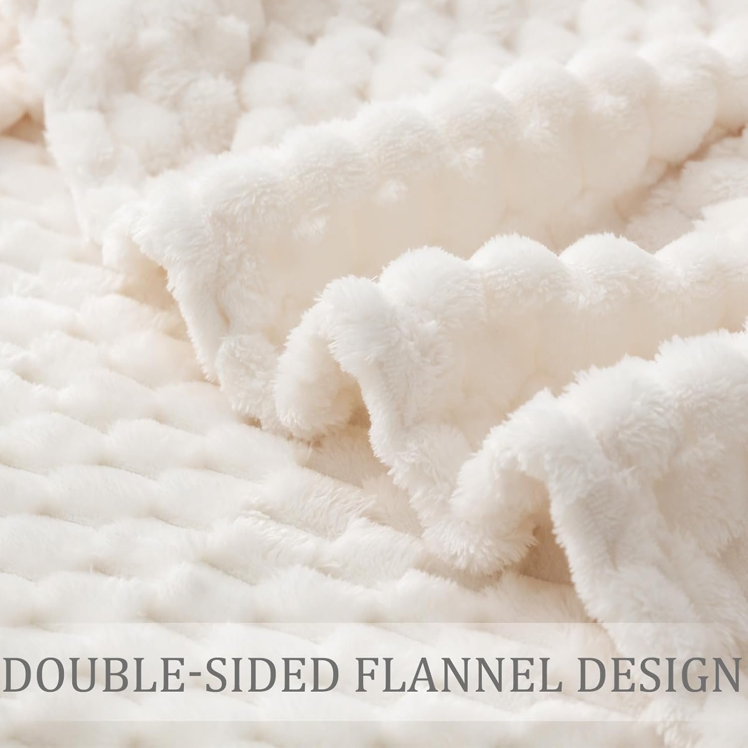 Exclusivo Mezcla Extra Large Soft Fleece Throw Blanket, 50×70 Inches 3D Clouds Stylish Jacquard Throw Blanket for Couch, Cozy Soft Lightweight for All Season, Off White Blanket
