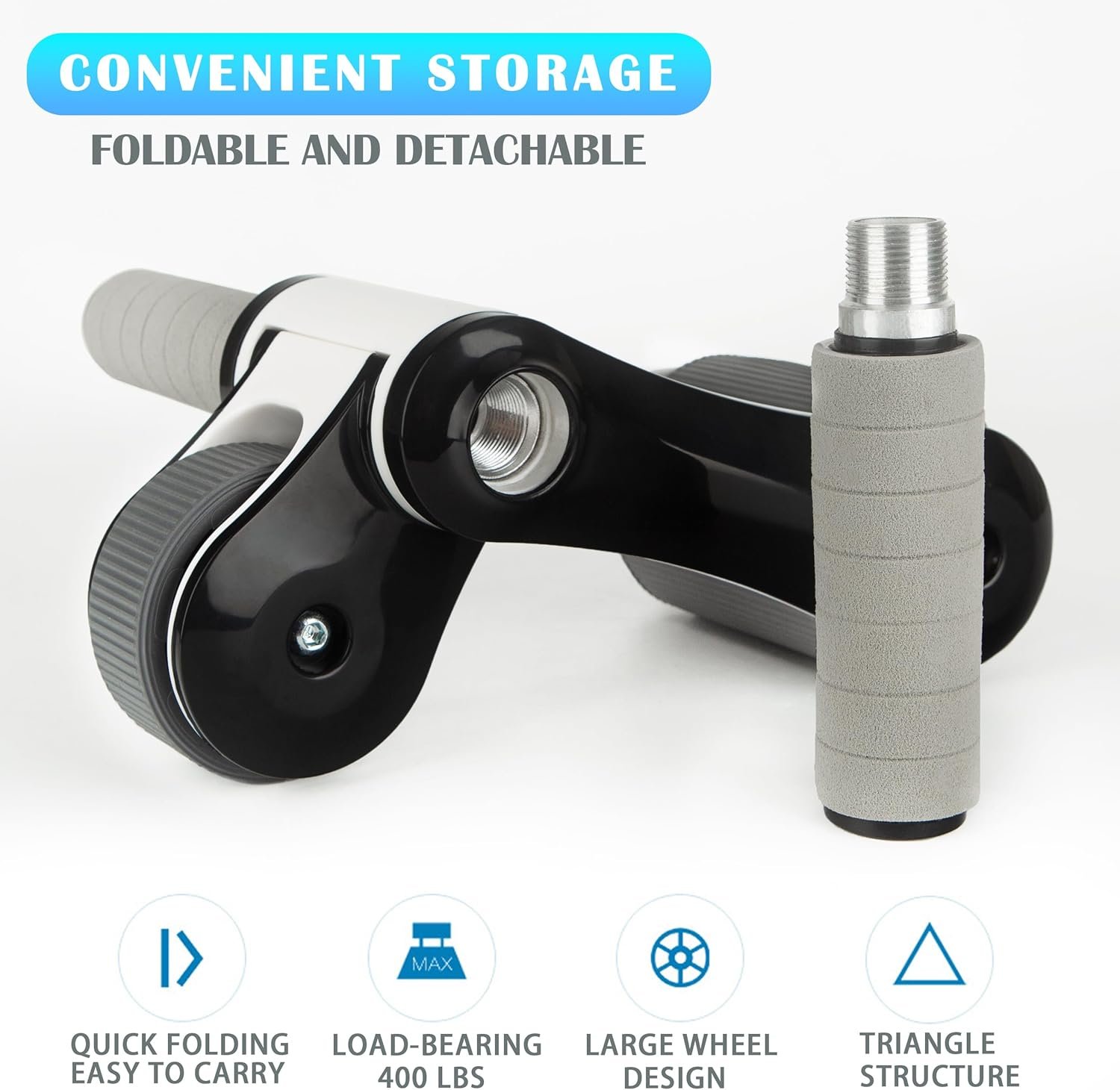 【REMOVABLE AND FOLDABLE COMPACT DESIGN】Our ab roller handles are easily removed, just screwing in or out. And the front wheels can be folded for compactness and portability (the folded size is about 8×5.5 inches), so you can exercise at home, office, and travel, providing long-lasting support for your fitness program.