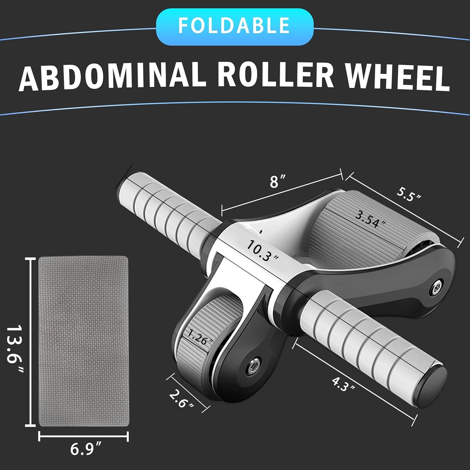 【ABDOMINAL WHEEL SIZE】The Ab trainer measures 10.3 “L x 13 “W, handle width 4.3″, front wheel width 1.26″, rear wheel width 3.54”, abs exerciser weight is 1.1kg (2.4lb). Double wheel design makes the force even, wider wheels to get more stable and lasting abdominal training experience.