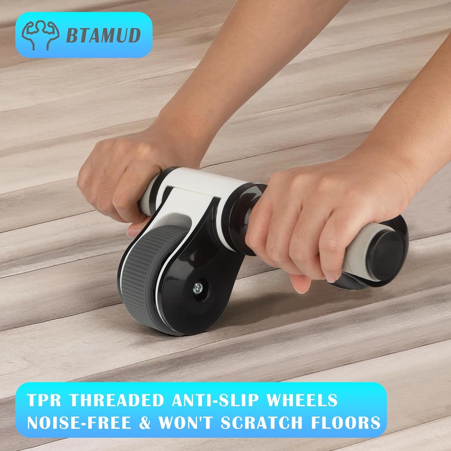 【HIGH QUALITY Abs Roller Wheel】BTAMUD abdominal exercise wheel made of high quality ABS materials with triangular design, providing excellent balance, strong stability and support during doing abdominal exercise. Equipped with 2 wrapping soft TPR rubber material wheel and a knee pad, it is anti-slip and noise-free during abs exercise at home and office floor, and will not hurt and scratch the floor. Meanwhile it is easier to control than other common core strength training wheels.