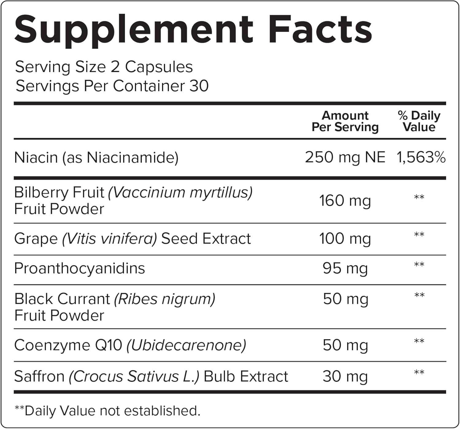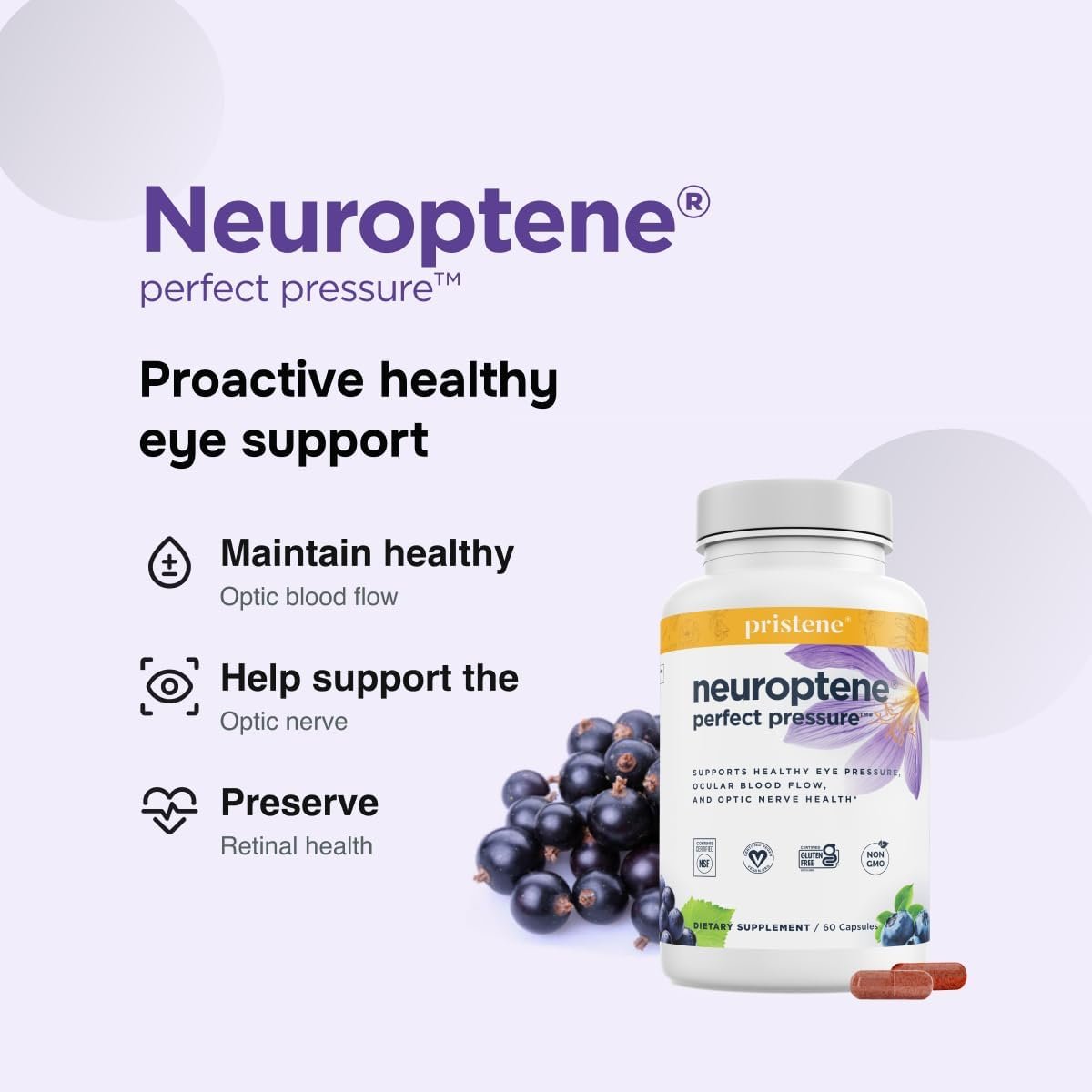 PREMIUM INGREDIENTS AT OPTIMAL LEVELS = PERFECT OPTIC NERVE SUPPORT: Neuroptene contains a powerful blend of niacinamide, coQ10, saffron, bilberry, black currant, and grape seed extract to support healthy eye pressure and maintain ocular blood flow.
