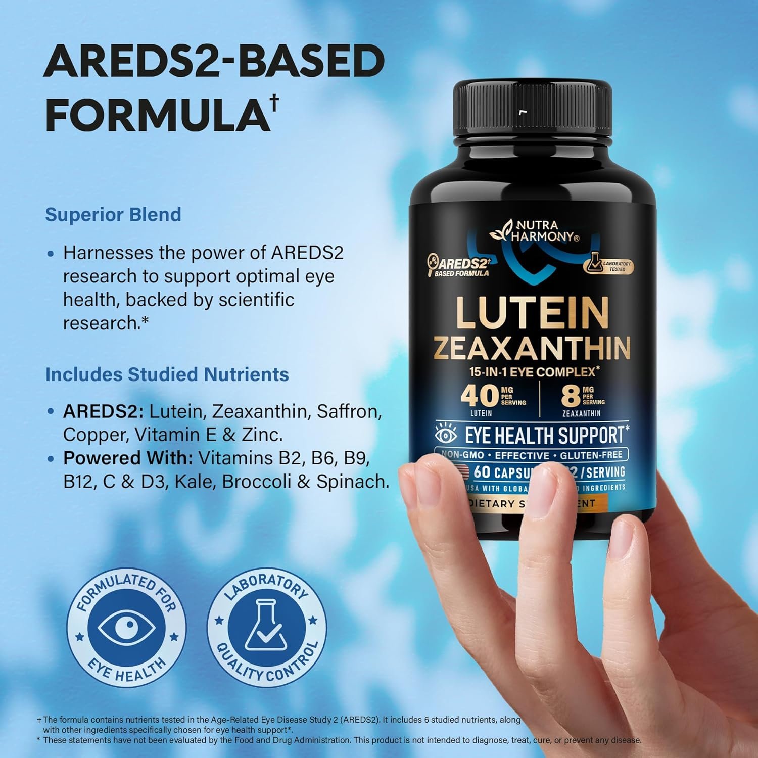 Trustworthy Service — We are committed to providing exceptional customer service and transparency with NUTRAHARMONY’s carefully selected vision supplements for adults. With Lutein supplements for eyes, you can trust that you’re receiving a premium-quality supplement backed by scientific research and dedicated customer support!