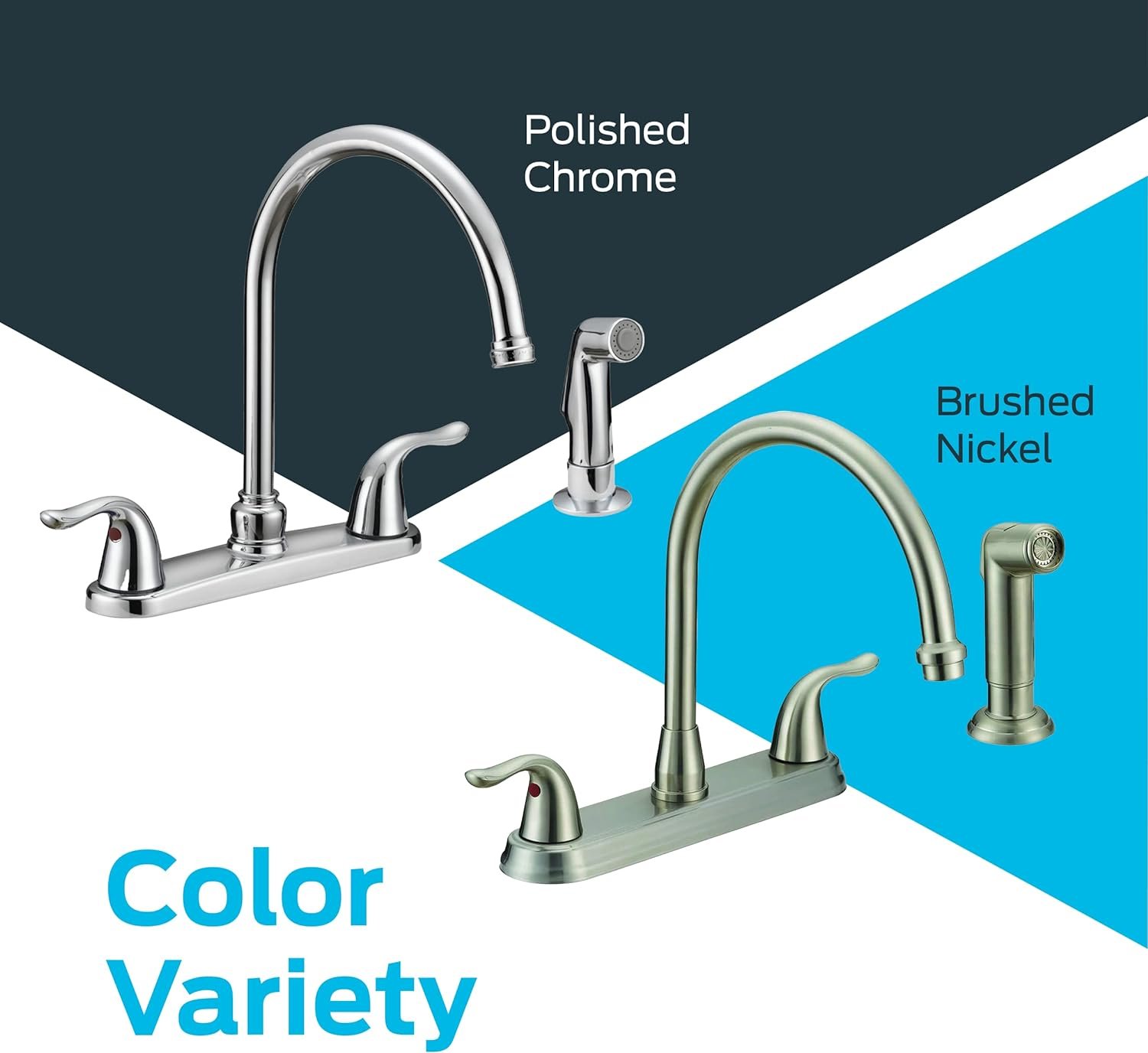 EASY INSTALLATION: Two handle faucet features convenient 4 hole installation; consists of 3 holes with deck mount and an additional hole for side sprayer installation