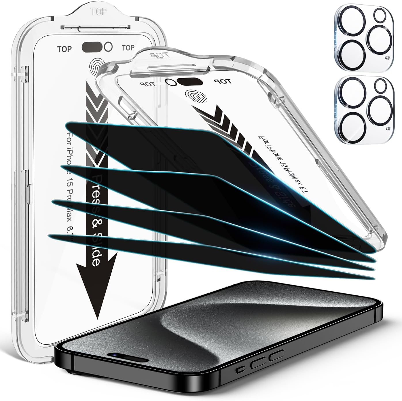 ![EZ-GLAZ-4 Pack Privacy Screen Protector for iPhone 15 Pro Max[6.7 inches] With 2 Pack Camera Lens Protector, [Drop Protection] 9H Hardness Scratch Resistant Tempered Glass Film, Easy to install - Image 5](https://topleaseyou.store/wp-content/uploads/2024/10/71McSKUnS9L._AC_SL1500_.jpg)