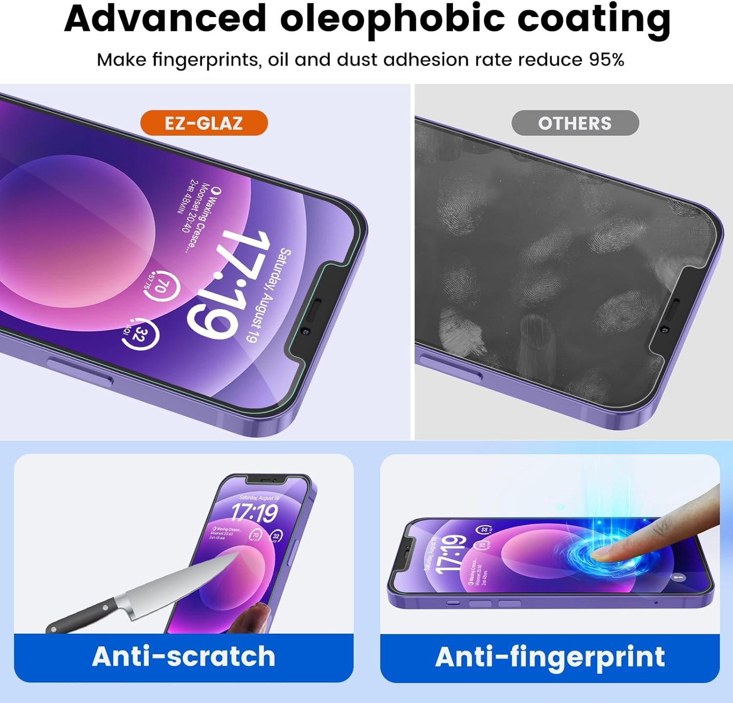 💎【Comprehensive Protection & Crystal Clarity】Preserve the quality and clarity of your iPhone 12 6.1-inch display without sacrificing protection. EZ-GLAZ Clear Coatings, outperform other options on the market. Designed for those who appreciate the naked-screen feel, these coatings are virtually invisible to both sight and touch. Relish in the same original clarity while relying on our trusted screen protection to prevent blemishes on your iPhone 12 6.1-inch.
