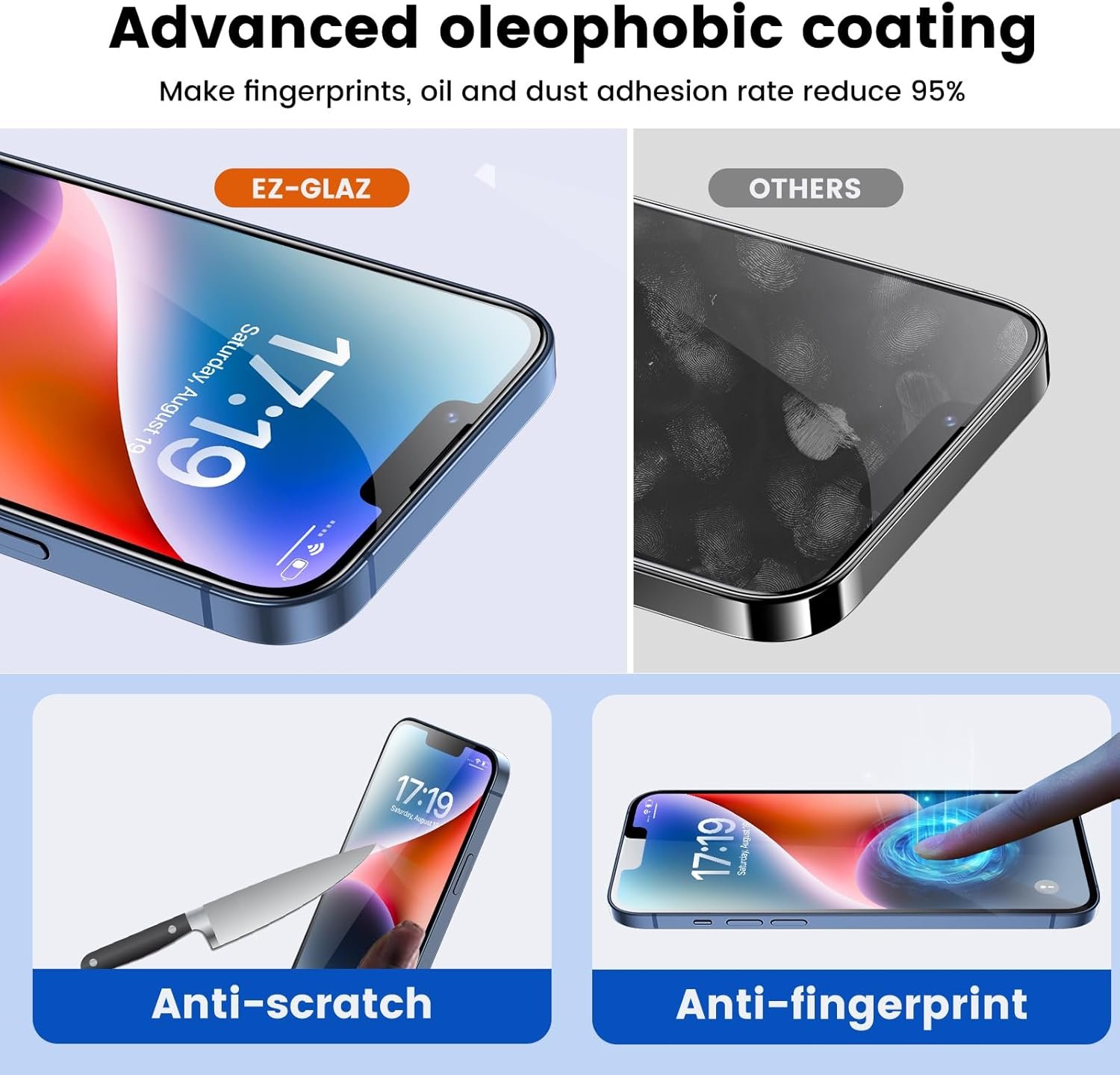 💎【Comprehensive Protection & Crystal Clarity】Preserve the quality and clarity of your iPhone 14 6.1-inch display without sacrificing protection. EZ-GLAZ Clear Coatings, made of advanced materials, outperform other options on the market. Designed for those who appreciate the naked-screen feel, these coatings are virtually invisible to both sight and touch. Relish in the same original clarity while relying on our trusted screen protection to prevent blemishes on your iPhone 14 6.1-inch.