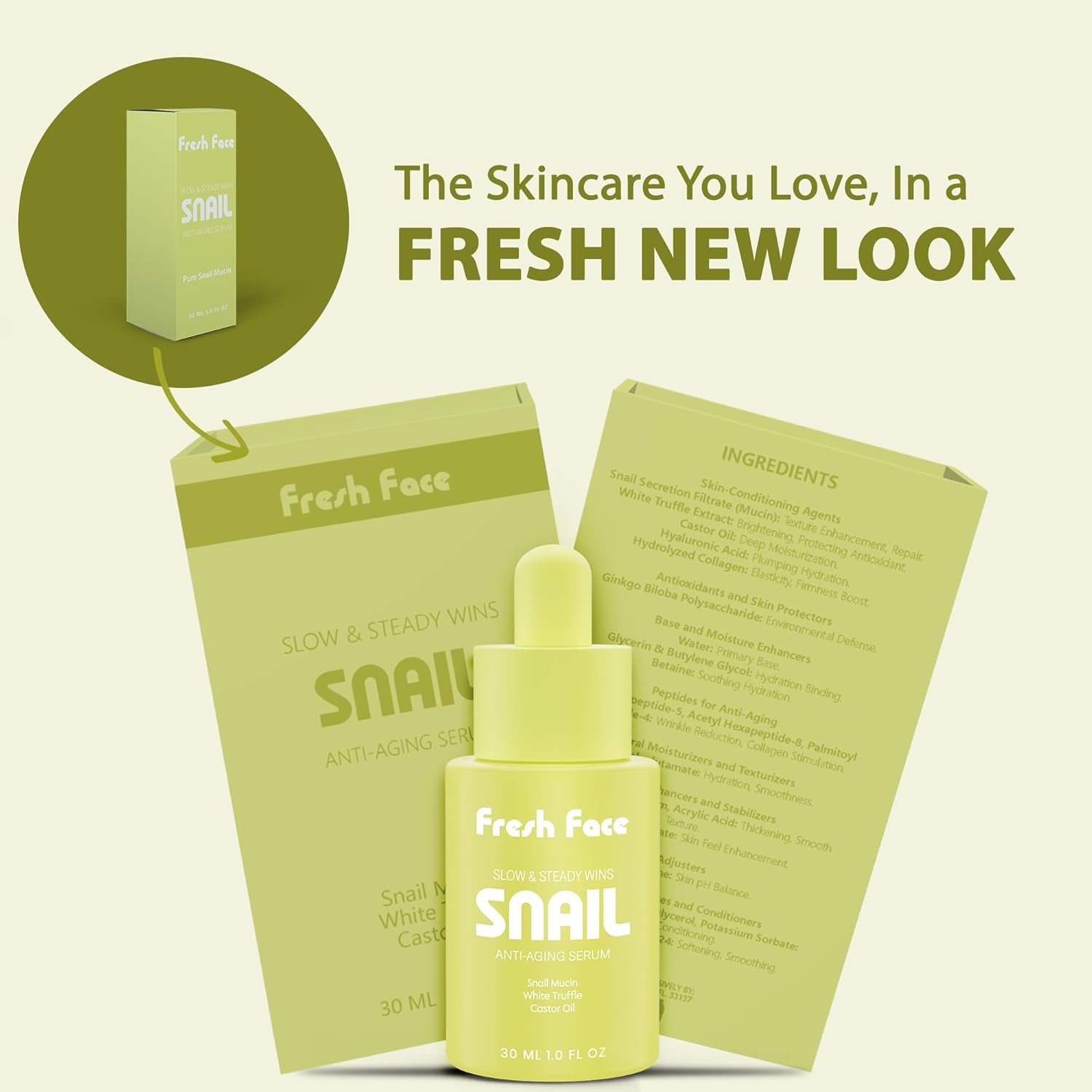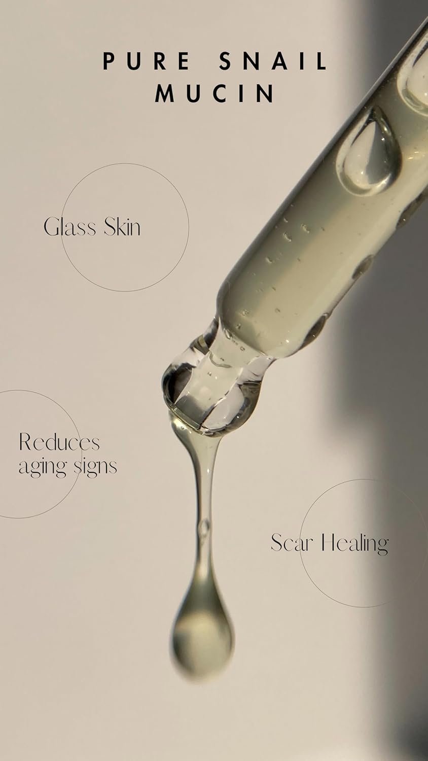 “Anti-Aging Snail Mucin Serum: Key Ingredients & Their Superpowers Base and Moisture Enhancers: Water: The primary base of the serum, carrying all the other ingredients to your skin. Glycerin & Butylene Glycol: Moisture-binding agents that attract and retain water, keeping your skin hydrated. Betaine: A gentle hydrator that doubles down by soothing and protecting your skin. Skin-Conditioning Agents: Snail Secretion Filtrate: A powerhouse for skin repair & glass skin, promoting smoother texture and enhanced cell regeneration. Sodium Hyaluronate: A form of Hyaluronic Acid that deeply hydrates and plumps the skin, reducing the appearance of fine lines. Hydrolyzed Collagen: Broken down collagen molecules easily absorbed by the skin, contributing to increased elasticity and firmness. Antioxidants and Skin Protectors: Ginkgo Biloba Polysaccharide: An antioxidant shield that protects your skin from environmental damage like harmful UV rays. White Truffle Extract: Packed with antioxidants, it protects your skin while leaving a luxurious feel. Peptides for Anti-Aging: Palmitoyl Tripeptide-5, Acetyl Hexapeptide-8, and Palmitoyl Pentapeptide-4: This trio of peptides work together like a symphony, stimulating collagen production to visibly reduce wrinkles and fine lines. Natural Moisturizers and Texturizers: Xylitol and its derivatives: Natural sugar molecules that help your skin retain moisture, keeping it soft and supple. Sodium Polyglutamate: An additional layer of hydration, smoothing the skin’s texture. Texture Enhancers and Stabilizers: Carbomer, Xanthan Gum, Acrylic Acid (Ester)/C10-30 Alkyl Acrylate Crosspolymer: These ingredients work together to thicken the serum and ensure a smooth, luxurious texture. Sodium Polyacrylate: Enhances the texture, creating a pleasant feel on the skin.”