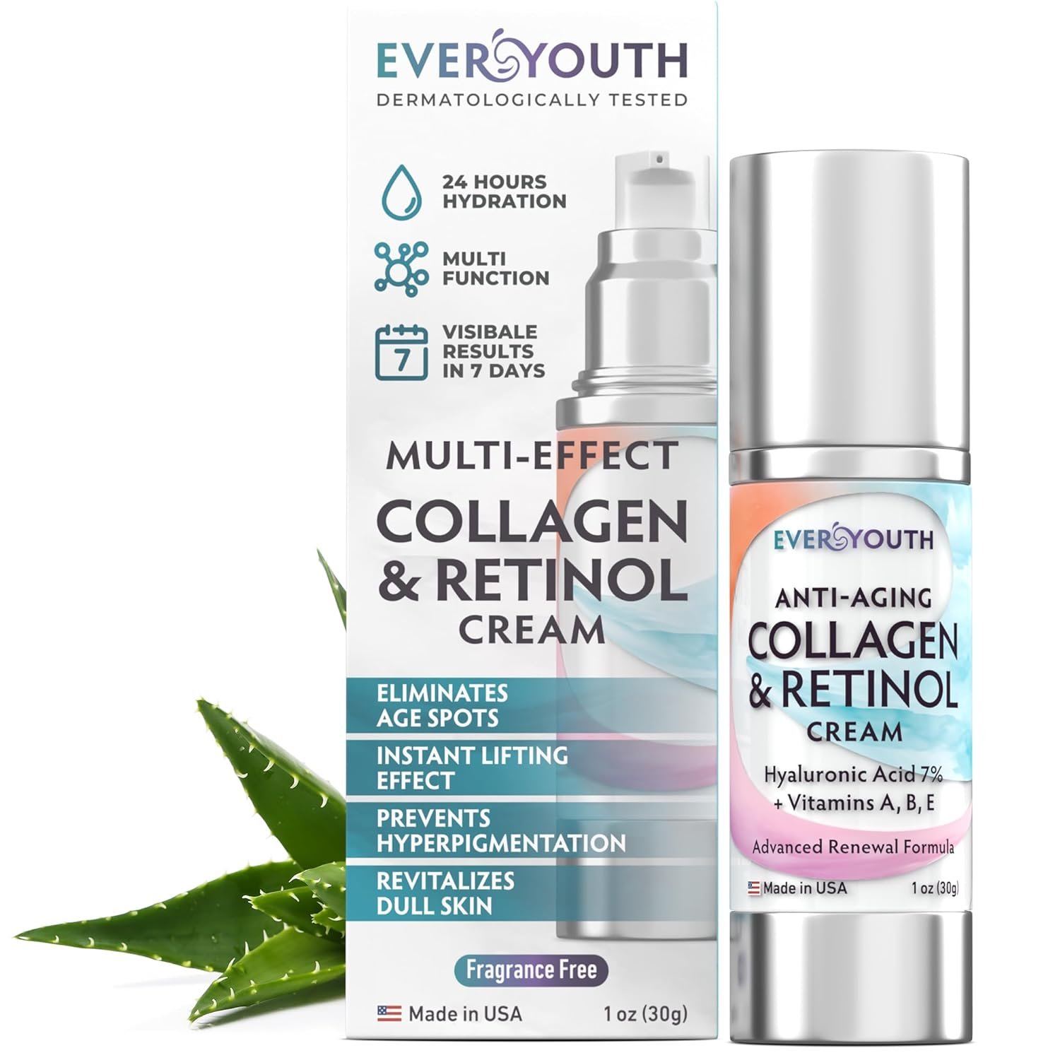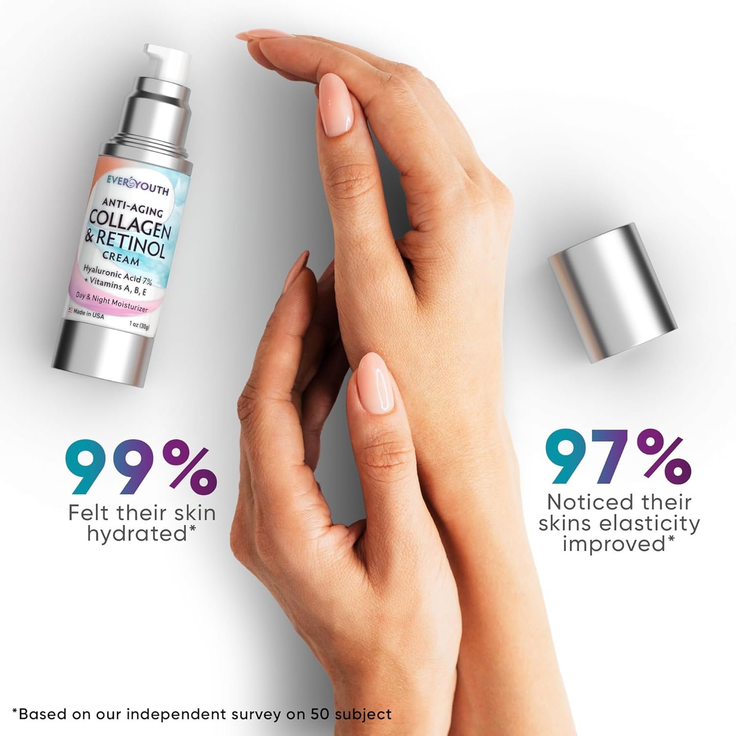 Travel Size Face Moisturizer: Visibly reduce wrinkles in 1 week with Everyouth’s retinol and collagen face cream moisturizer, packed with collagen for face women retinol cream, and 7% hyaluronic acid cream. This collagen skin moisturizer cream for face has shown to leave 100% of users with hydrated, soft and visibly refreshed skin. This isn’t just another anti wrinkle face cream for women or hydration face cream; it’s your travel size moisturizer collagen retinol hyaluronic acid cream, with 100% of women noticing a visible reduction in fine lines and wrinkles after just one week of use.