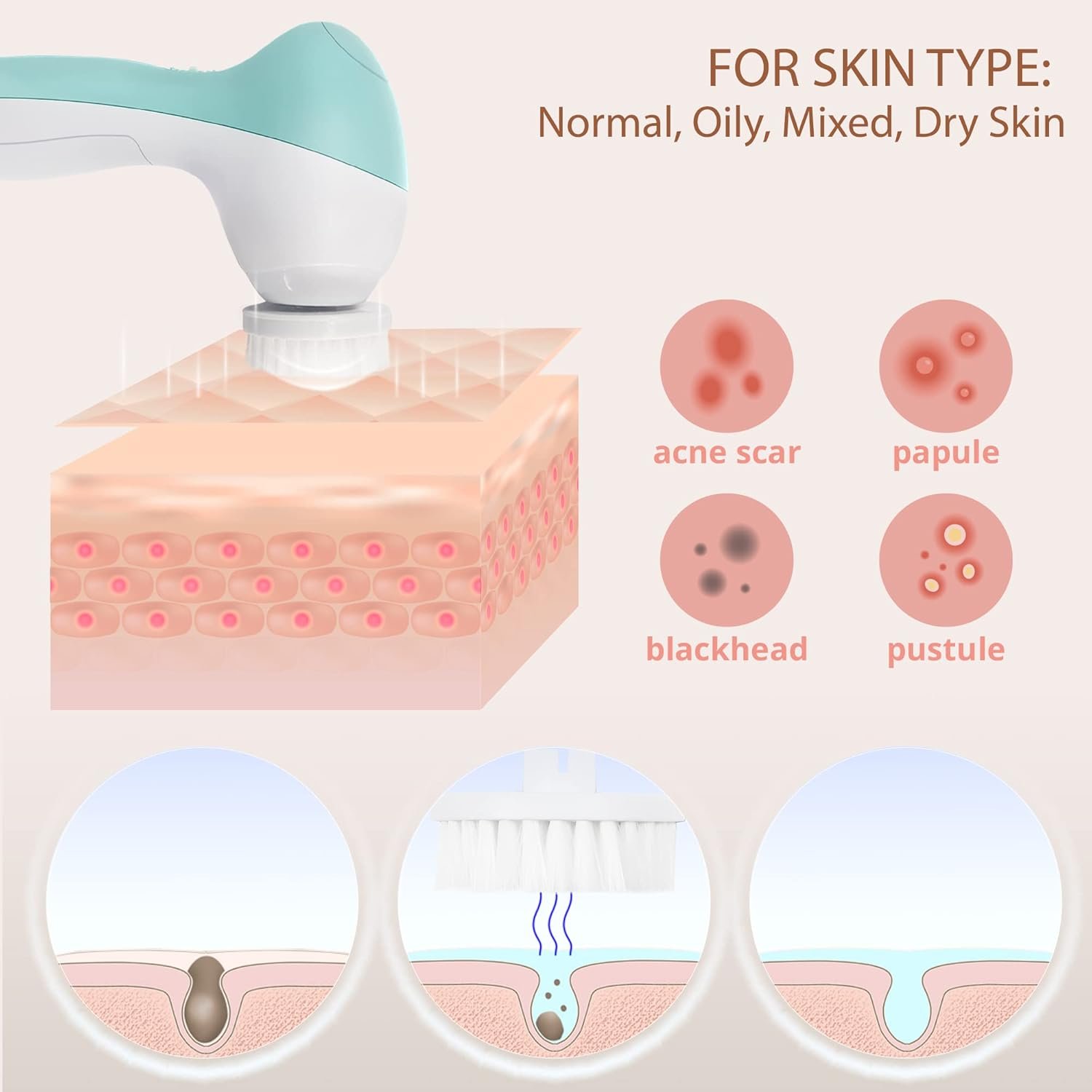 Customers like the value for money and ease of use of the skin cleaning brush. They mention it’s well worth it, user-friendly, and saves space without multiple tools. Some are satisfied with how well it cleans, its skin care, and softness. However, some customers have reported that the quality is cheaply made and not waterproof. Opinions are mixed on its functionality.