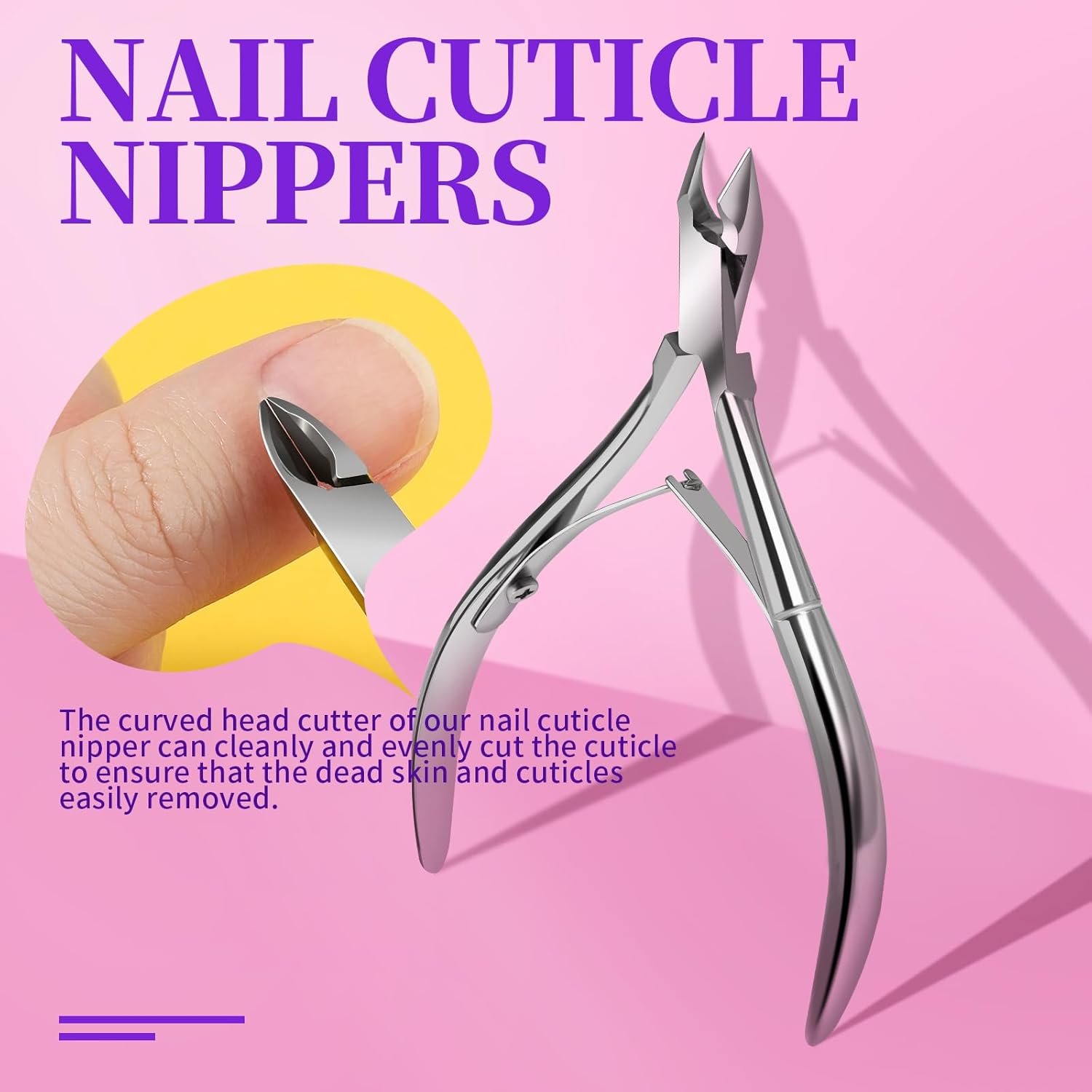 Cuticle Trimmer & Cuticle Pusher & Cuticle Fork: The triangular side of nail cuticle pusher is very suitable for removing residue and dirt under nails. The spoon-shaped side used for pushing the cuticles together. It is also the best helper for removing the nail gel or polish residue. The curved head cutter of the nail nipper can cleanly and evenly cut the cuticle to ensure that the dead skin and cuticle easily removed. The cuticle fork can remove the hard dead skin around the nails.