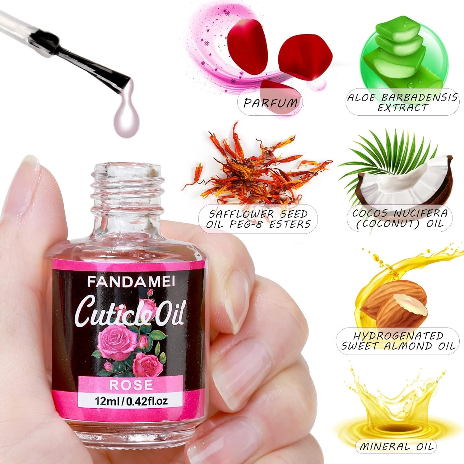 Rose Nail Cuticle Oil: Made of high quality natural ingredients, a variety of vitamins, softens and strengthens the cuticles and nails. Anti-oxidation, moisturize the nails and cuticle skin. And amazing light and sweet fragrance helps to relax and give you a good mood. You can use it as a daily nail treatment and we also recommend to use when you finish the manicure or after removing gel nail polish.