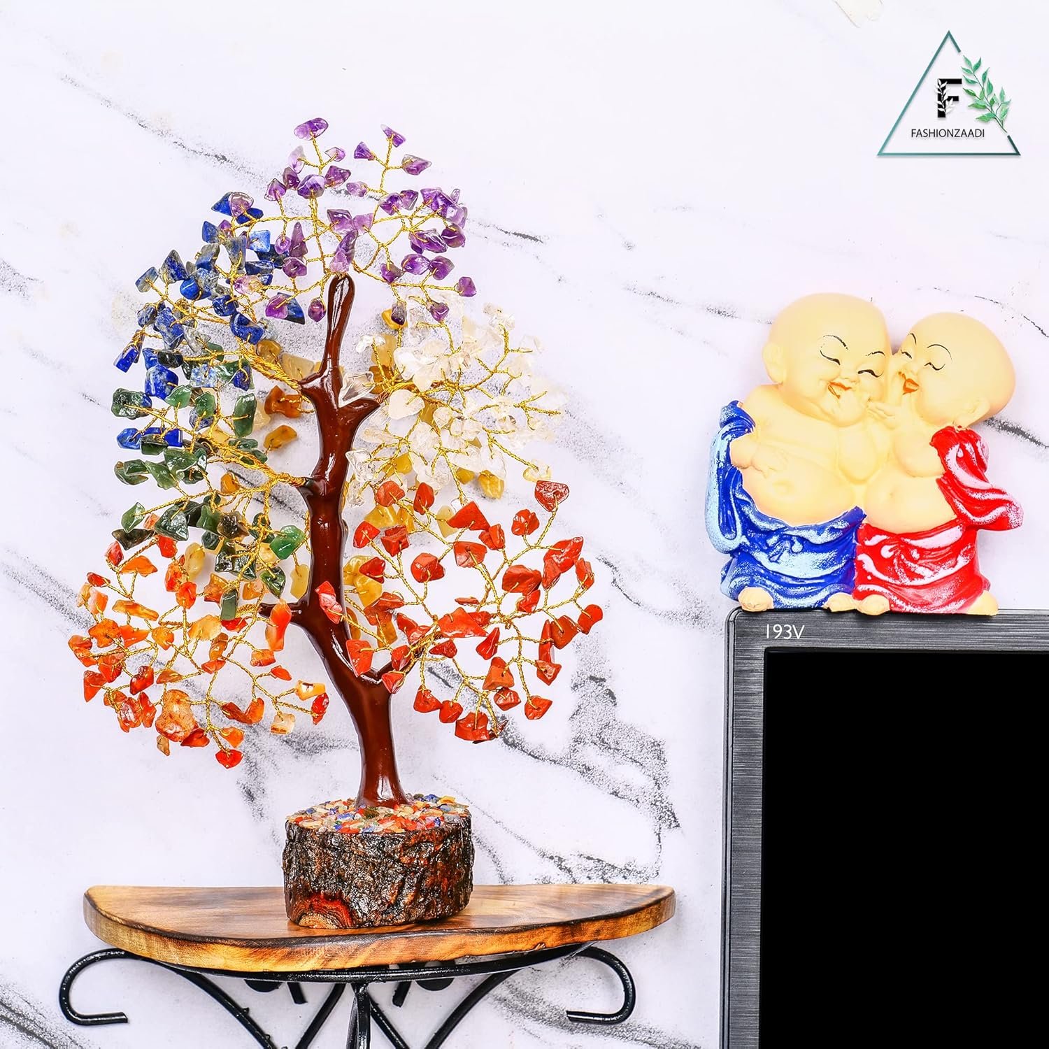 FASHIONZAADI 7 Chakra Tree – Crystal Bonsai Tree – Spiritual Decor – Spiritual Gemstones – Sculptures Home Decor – Crystal Gifts – Gemstone Tree – Tree of Life Decor – Desk Decorations