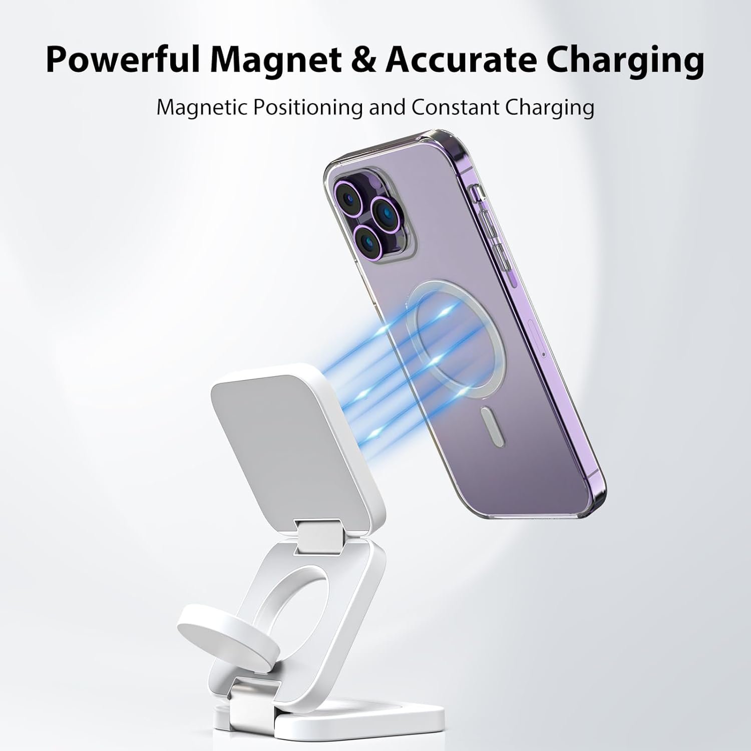 Efficient Wireless Charging with Strong Magnets: Our charger features high-quality built-in magnets that securely hold your iPhone in the optimal charging position and automatically lock it in place. With its 3-coil wide charging area, you can enjoy a fast and stable wireless charging experience.