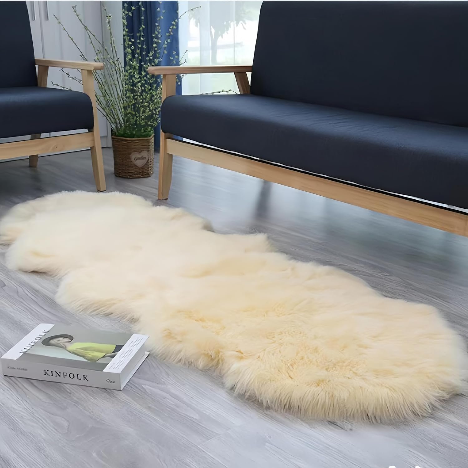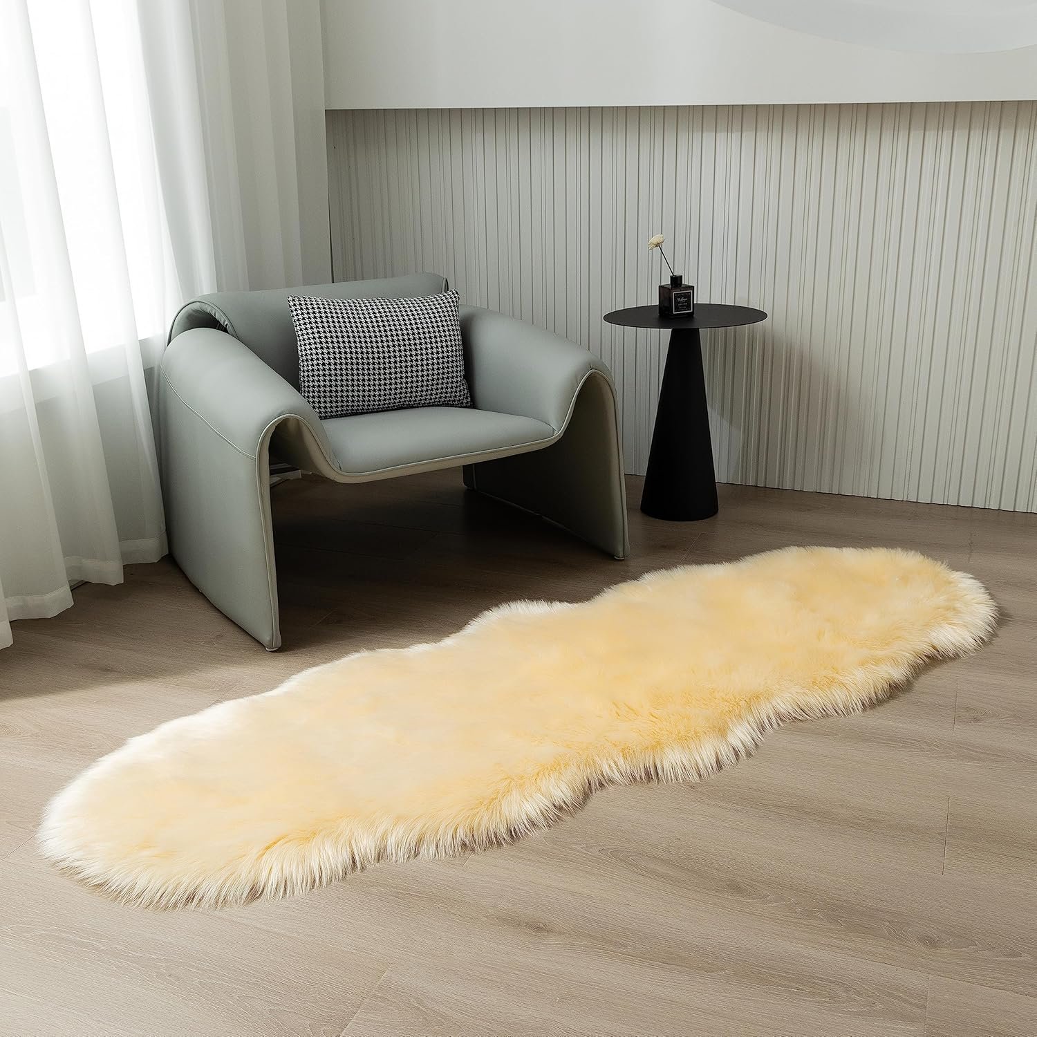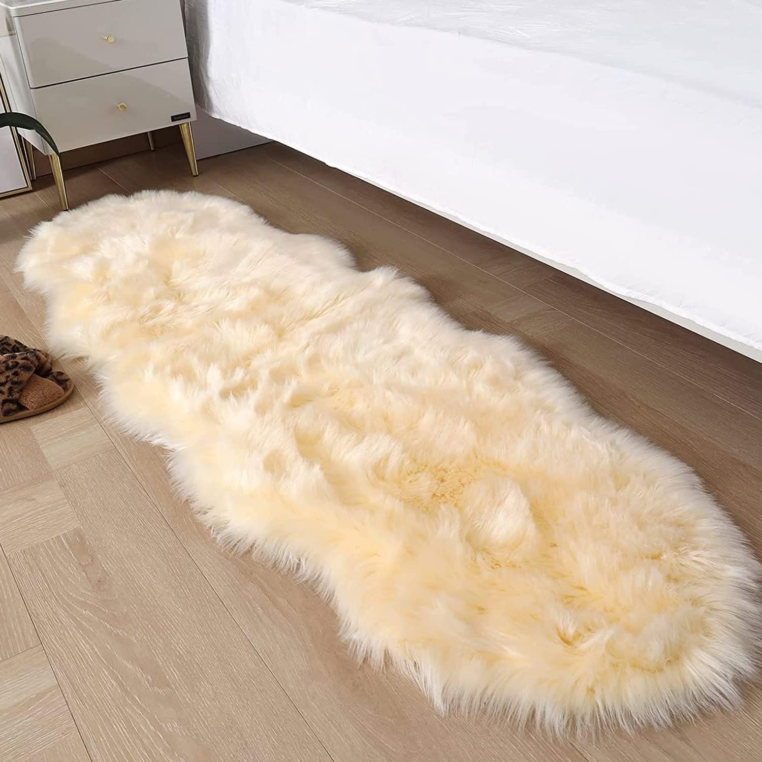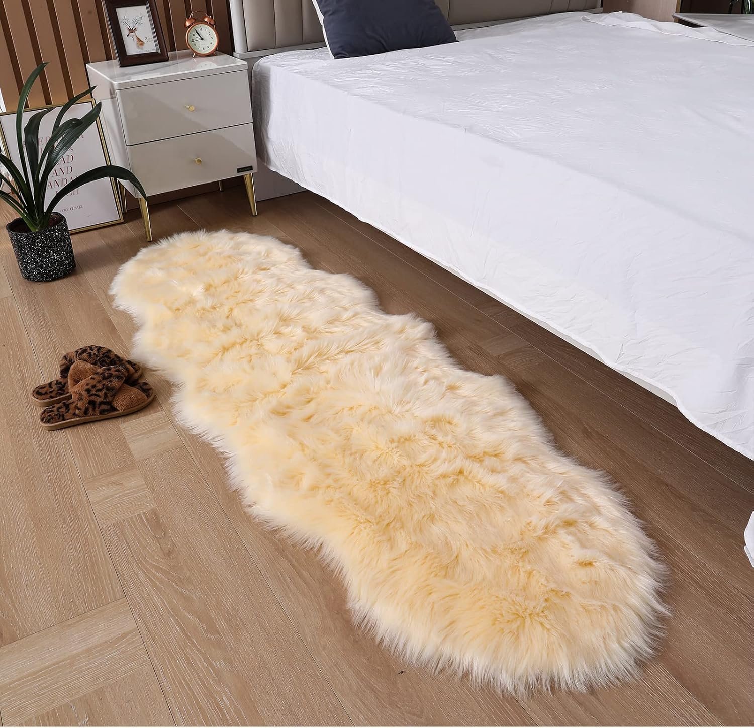 Faux Fur Sheepskin Rug Super Soft Fluffy Plush Area Rug Bedroom Floor Children’s Room Sofa Cushion Living Room Runners Bedside Rugs(Beige,2×6 ft Sheepskin)