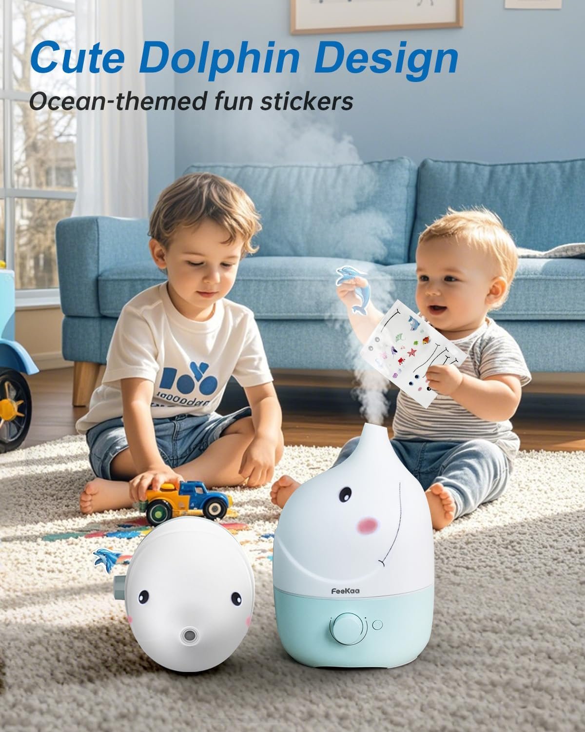 【3-in-1 & Cute Dolphin-Shaped Design】Combining a humidifier, essential oil diffuser, and night light, Feekaa adorable dolphin-shaped humidifiers for bedroom is a perfect gift for baby and kids. Designed with little ones in mind, its playful shape captures your baby’s imagination, and personalize the air humidifier uniquely yours with fun ocean-themed sticker! It’s a delightful and practical essentials to any nursery or kids bedroom!
