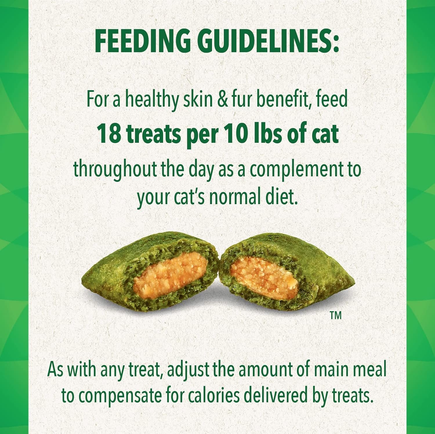 FELINE GREENIES SMARTBITES Skin & Fur Treats for Cats are the perfect treat to keep your cat purring. Designed by veterinarians with fish oil that provides a rich, natural source of omega-3 fatty acids, as well as ground flaxseed, these healthy cat treats help maintain healthy skin and fur. These delicious vet recommended cat snacks have added vitamins, minerals, and other nutrients for a nutritionally complete and balanced snack. Plus, the irresistible little treats come in a delectable salmon flavor and have a delightful crunchy and soft dual-texture. These FELINE GREENIES are tasty skin and fur treats your adult cat will love. They’re also the perfect sized treats for cat toys… try placing a few inside a treat dispenser toy and watch your cat chase and swat away. Share with all the felines in your life and give them FELINE GREENIES SMARTBITES Skin & Fur Treats for healthy, happy purrs of joy.
