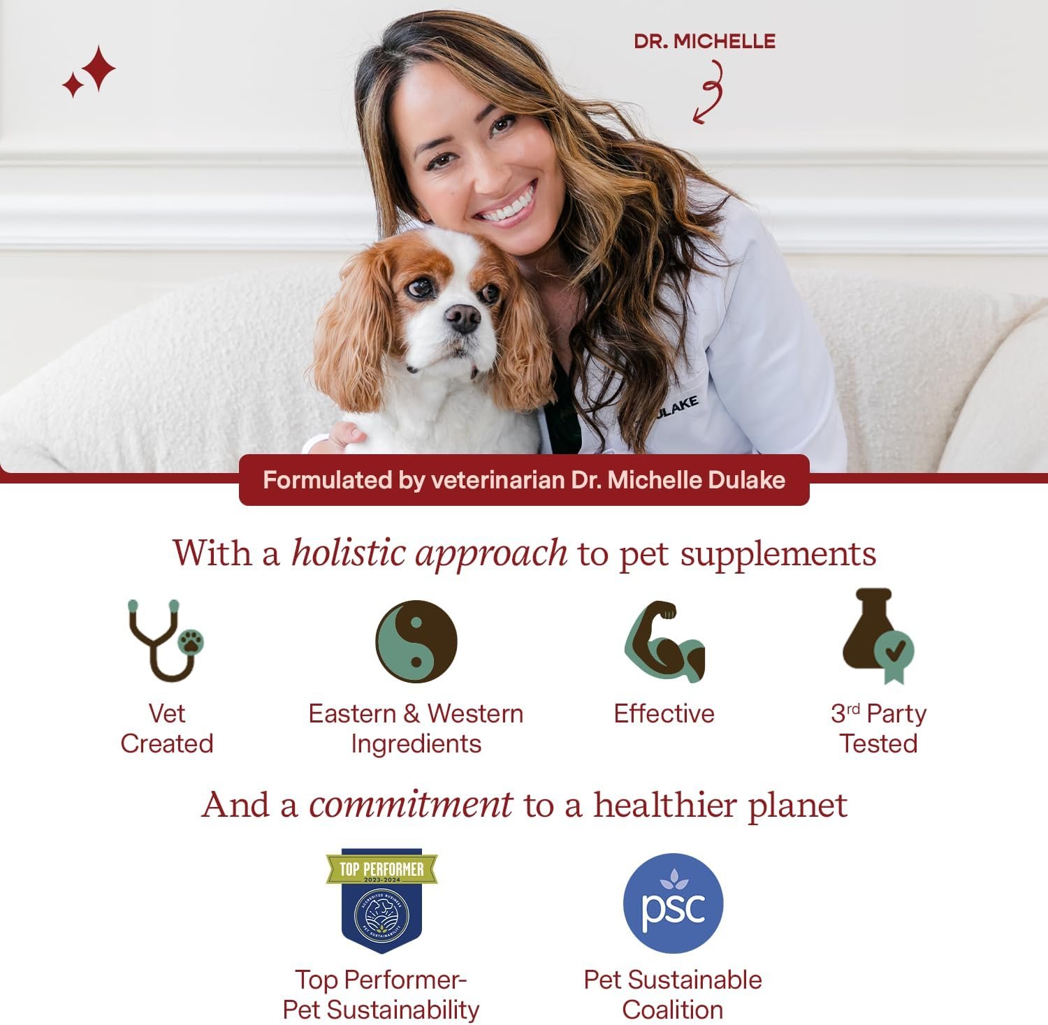 Care from head to tail: Dog and cat supplements crafted from our commitment to creating effective, honest and delicious cat and dog vitamins and supplements, while combining Eastern and Western ingredients for a holistic approach to your pet’s wellbeing