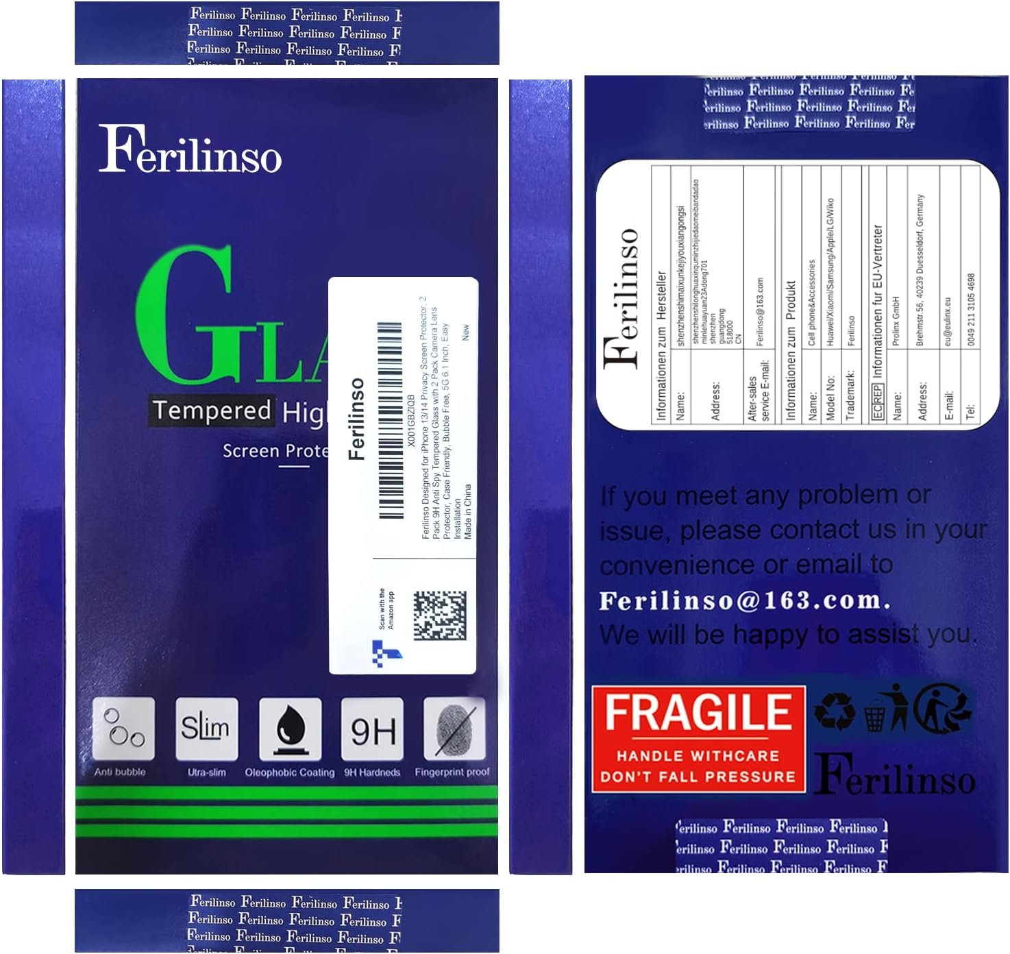 Frontal 99.99% HD & Sensitive Touch: Ferilinso Privacy Glass screen protector break through the defects of the blurred picture of the privacy glass films on the market, highly restore the best visual feast brought by the iPhone screen. 0.33mm ultra-thin tempered glass maintains EXcellent responsiveness sensitivity touch make you feel nothing on screen. Hydrophobic and oleo-phobic coating make it anti-fingerprint and dirt- proof, giving you a ultimate Bare-screen touch.