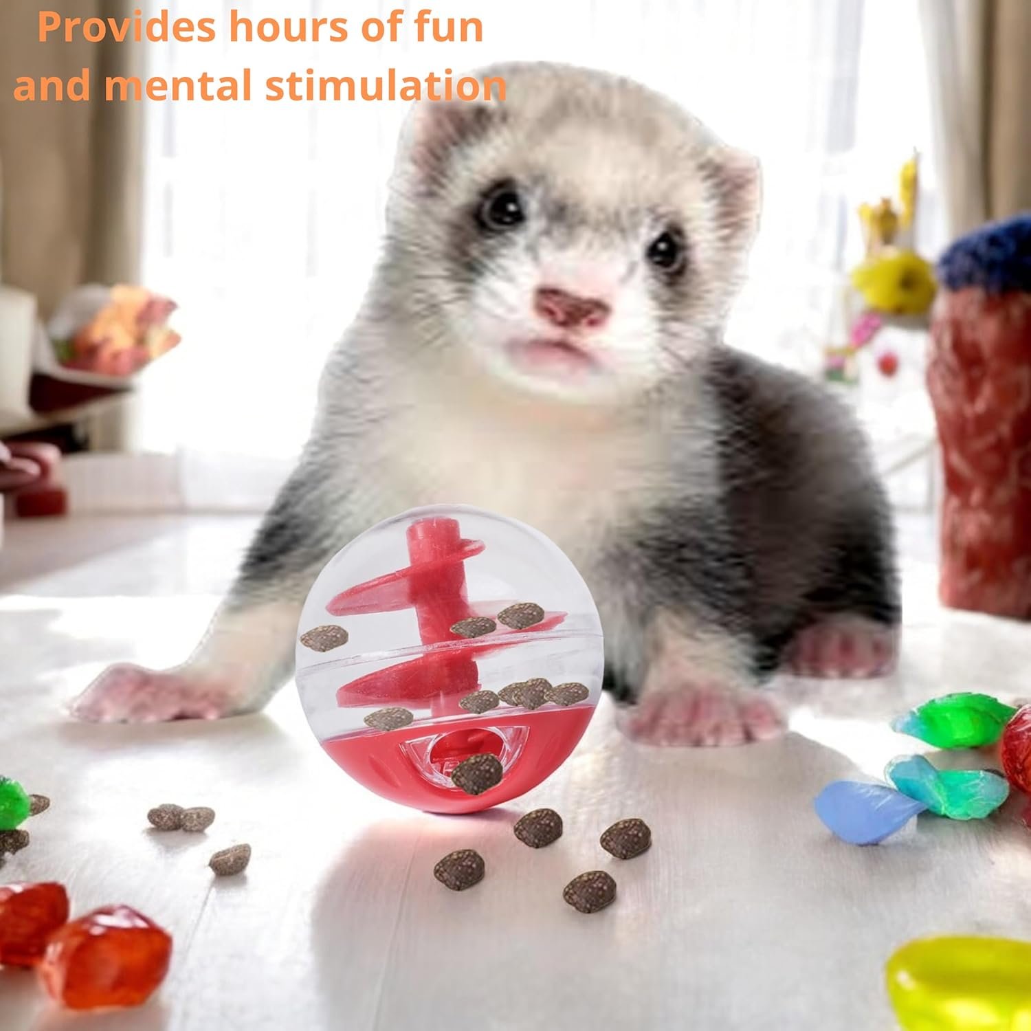 Built to last: Crafted with durable plastic materials, our ferret treat ball, pet treat ball is built to withstand even the most energetic chewers. The ferret ball toy, ferret supplies construction ensures a safe and enjoyable playtime for your pet. You can rest assured that your furry friend will have endless fun without compromising their safety when using our ferret accessories toys, ferret stuff things.
