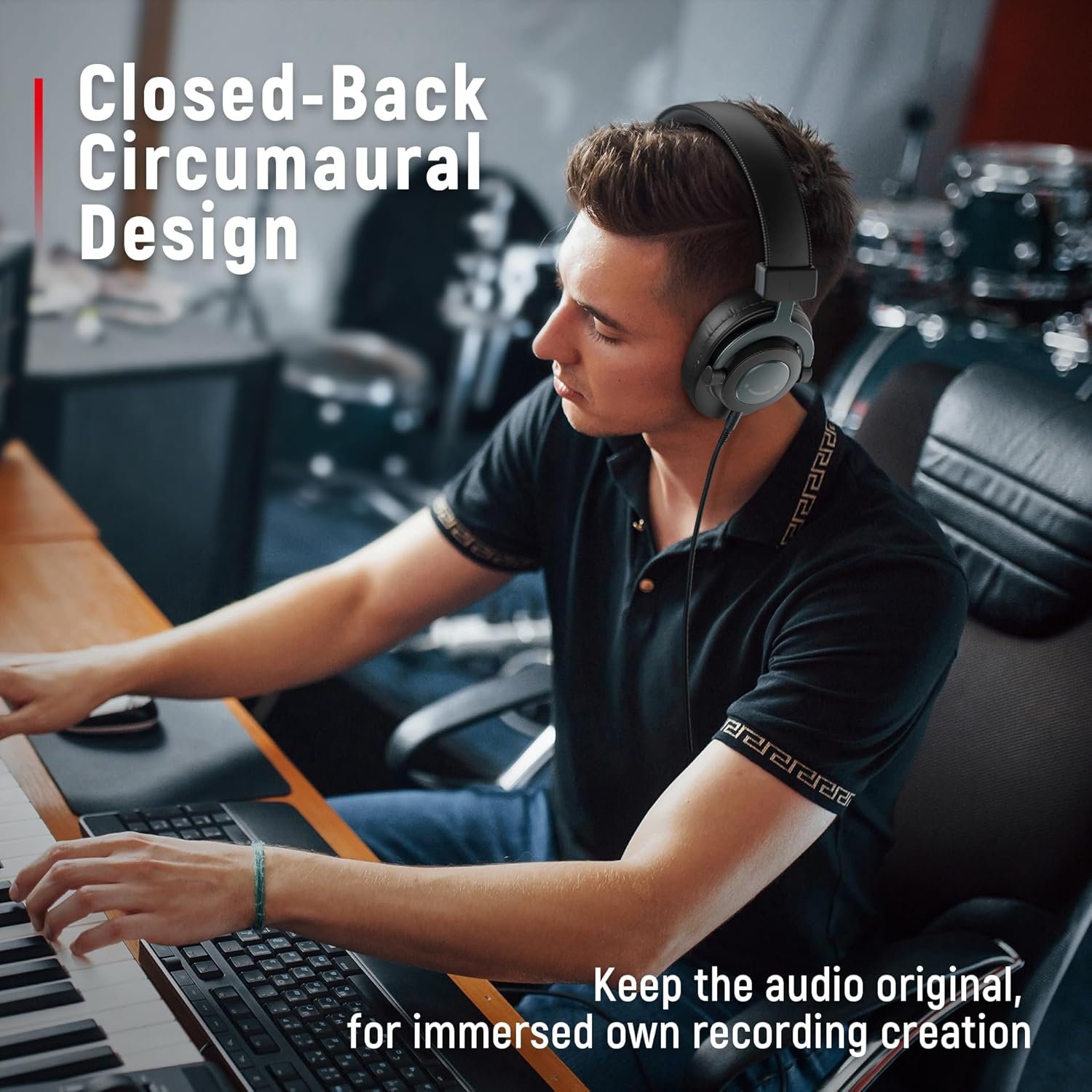 [PASSIVE NOISE-CANCELING] The circumaural closed-back studio headphones for recording design provides decent isolation, which blocks high-frequency noise signal from the environment, creating an immersive working zone. The ergonomic design corded headphones would be right fits for your ears, so you will not feel oppressed or sound leakage and have a better master over your sound.