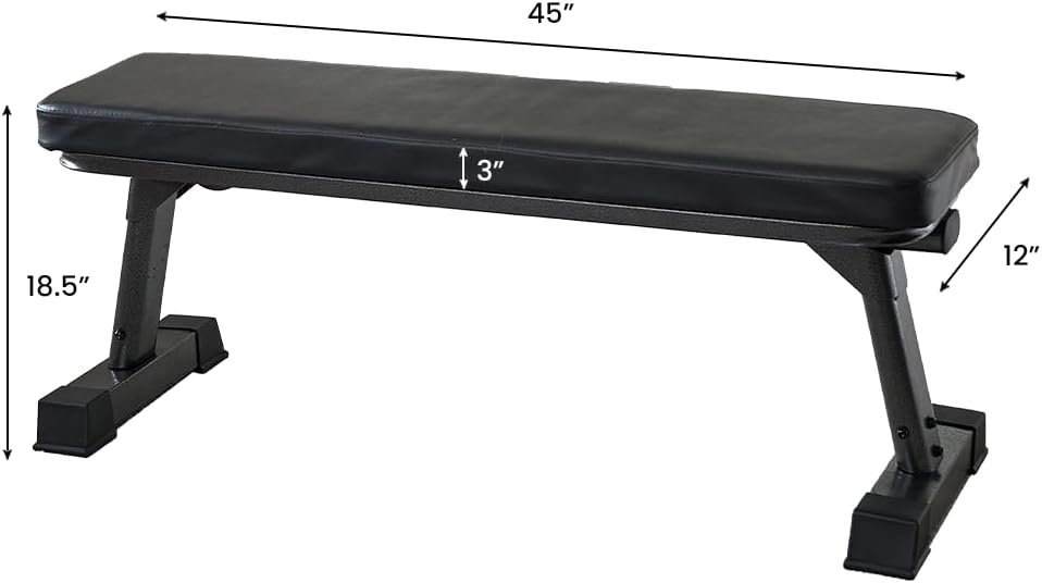 Exercise Bench Convenient for Small Spaces – foldable flat bench easily and stores quickly under beds or in closets. The flat weight bench that’s perfect for smaller apartments, offices or home gyms.