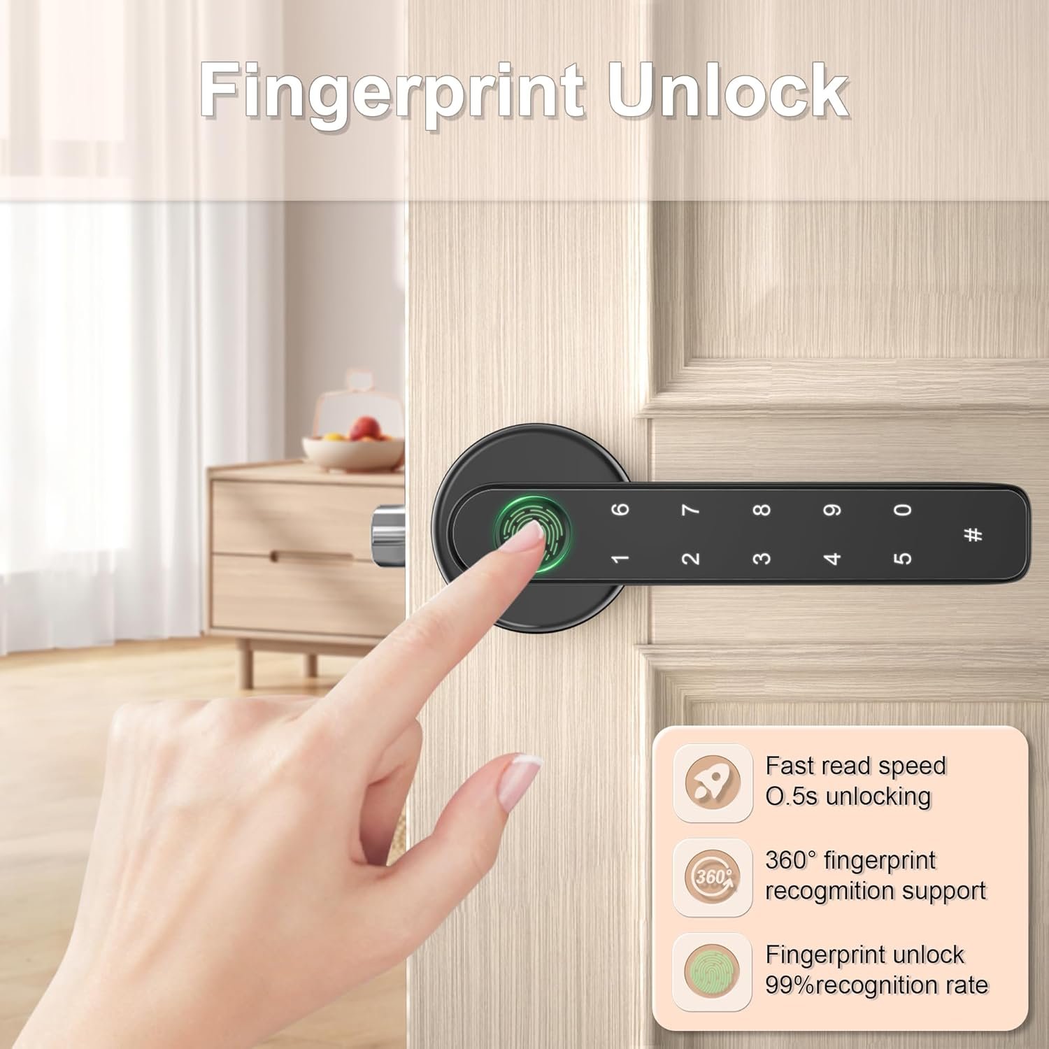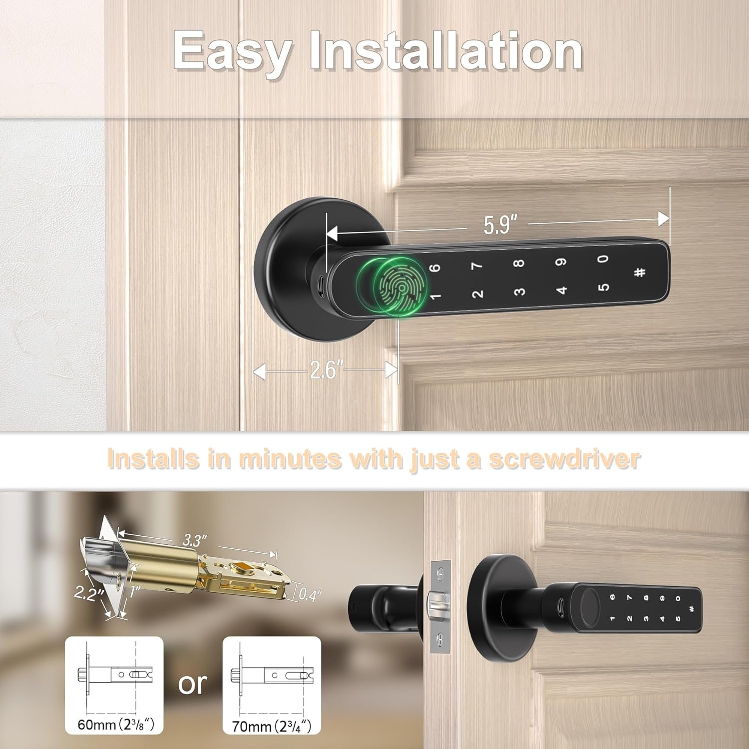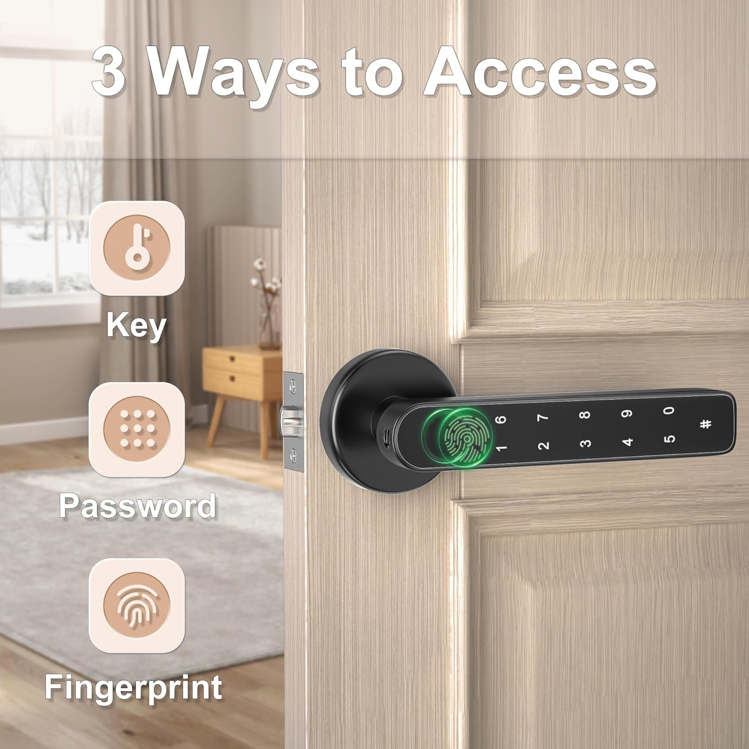 Fingerprint Door Knob Biometric Door Lock with Code Keyless Entry Door Handle for Bedroom Home Hotel Office Apartment Black