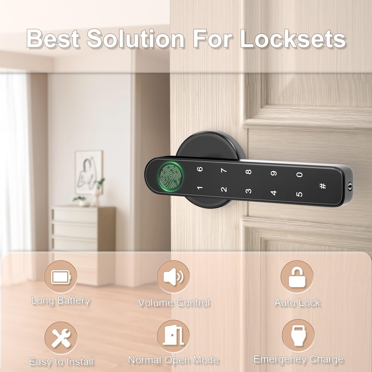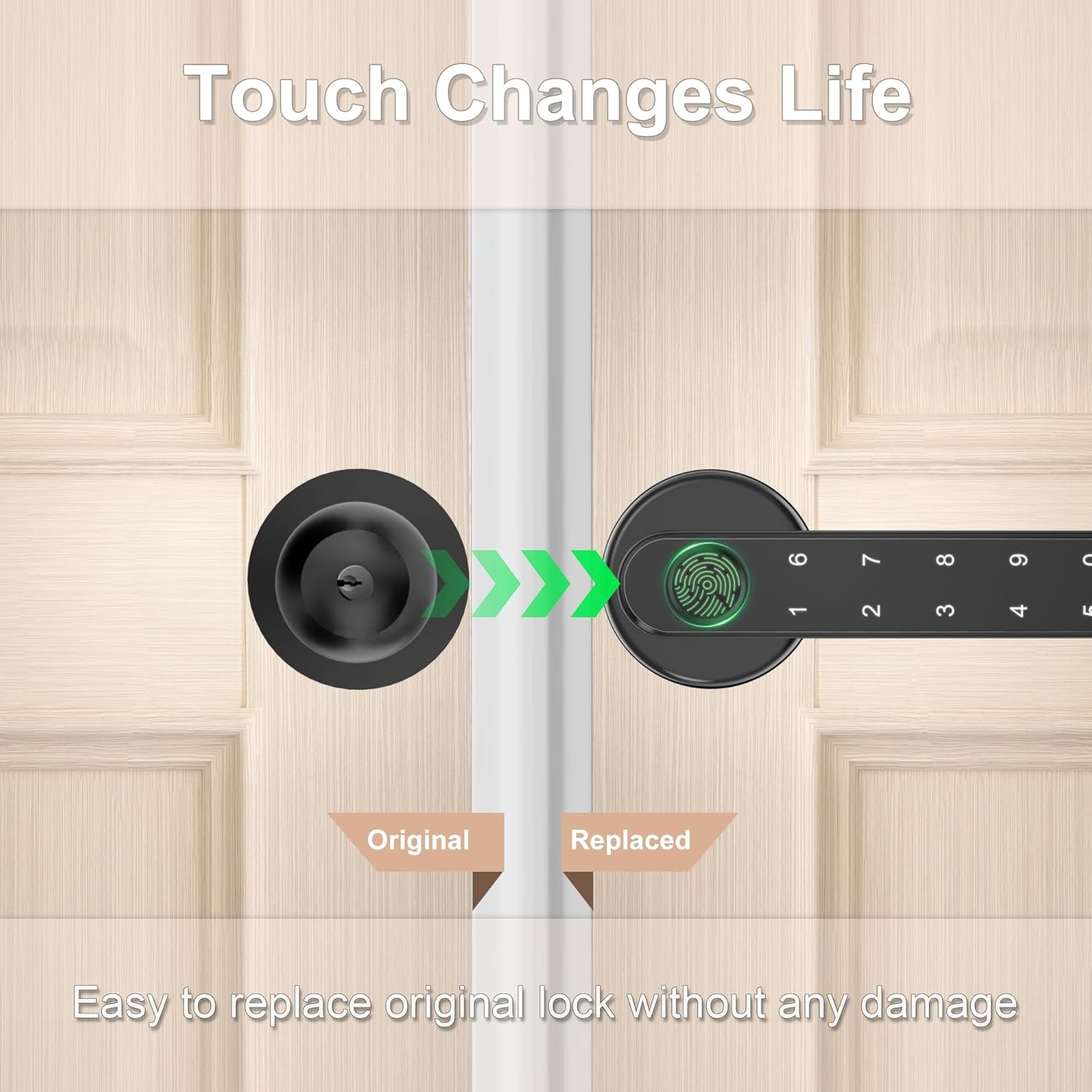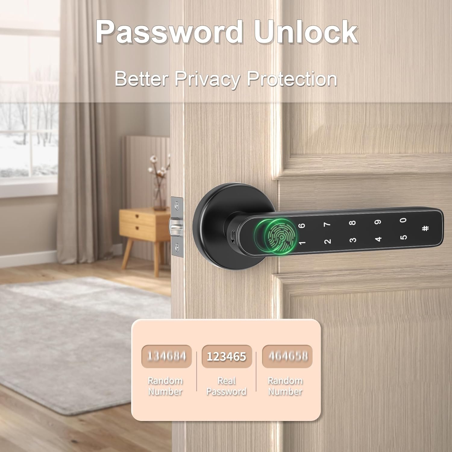 Fingerprint Door Knob Biometric Door Lock with Code Keyless Entry Door Handle for Bedroom Home Hotel Office Apartment Black
