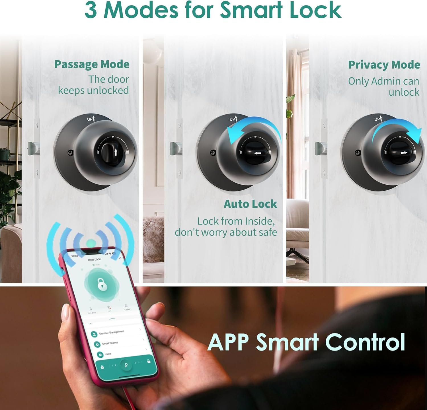 【Three Mode Features Smart Door Lock】: Fingerprint Door Knob provide the flexibility of App Control within Bluetooth range. No more fumbling for keys! Just a quick thumb scan, and you are in home. And secure unlocking options for your homes:passage mode, normal mode(automatic lock), privacy mode to create a smarter door locks for bedroom, guard your family safety. But when you want WIFI control, need to purchase a separate gateway. And remote unlocking requires a gateway connection