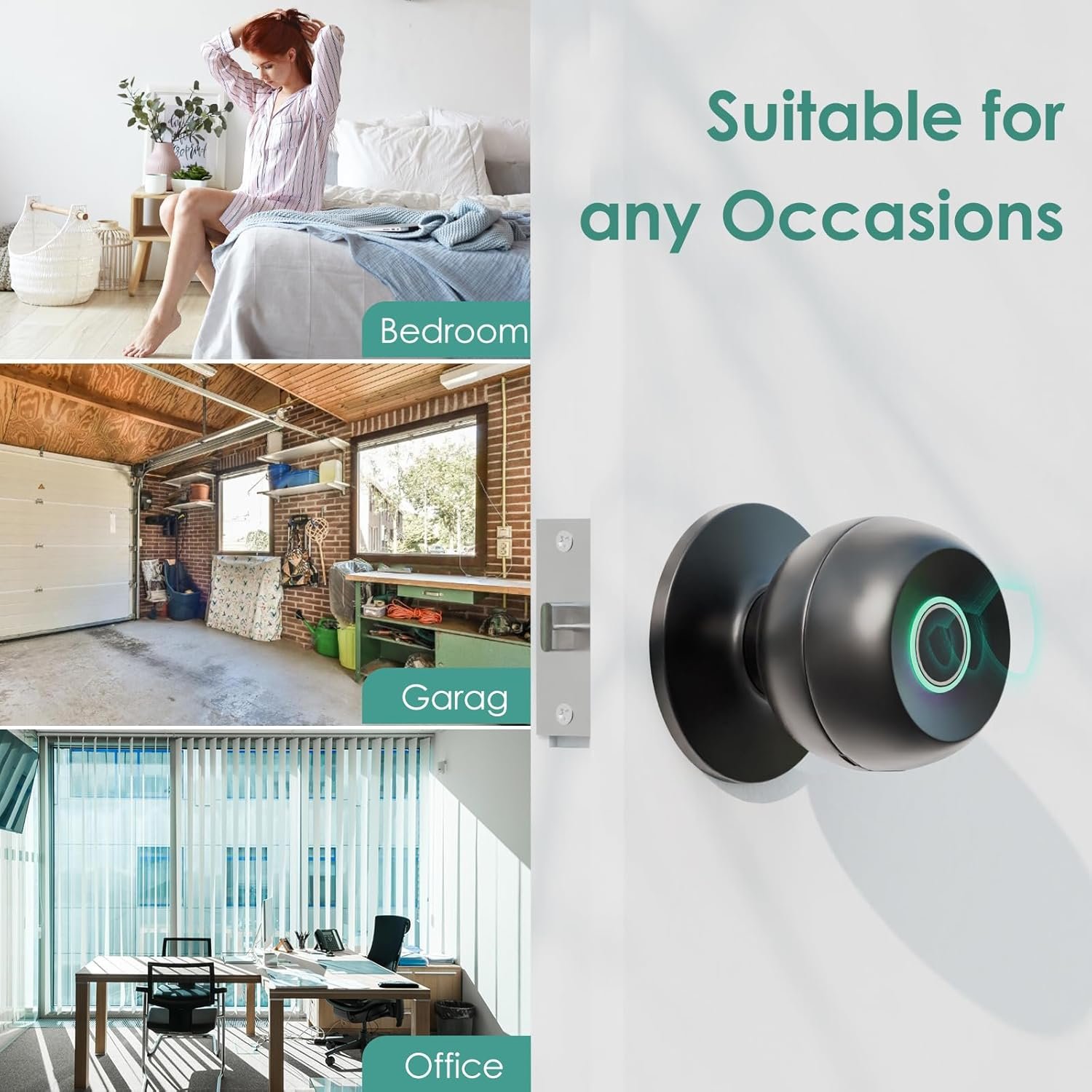 【3-In-1 Fingerprints Door Knob】: This Fingerprint Door Lock combines modern design with robust security features, and the Smart Locks for front door offers 3 unlocking Methods suit your diversity needs, including fingerprint unlock, smart App control(works with Tuya App), 2 emergency back-up key, making entry and exit more convenient and secure. 2024 Biometric Door Lock suitable for Bedroom, Front Door, Home, Apartment, Office, Garages, Hotels