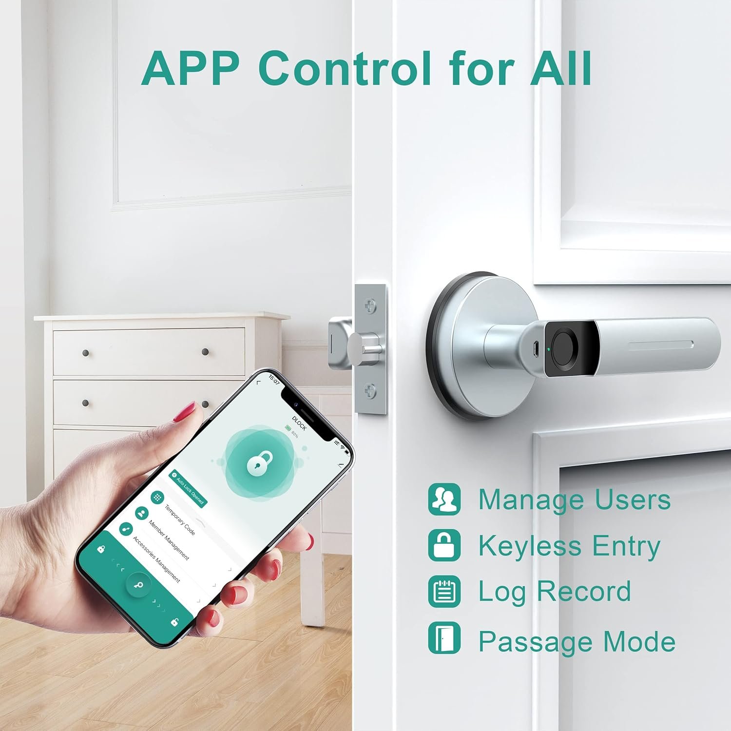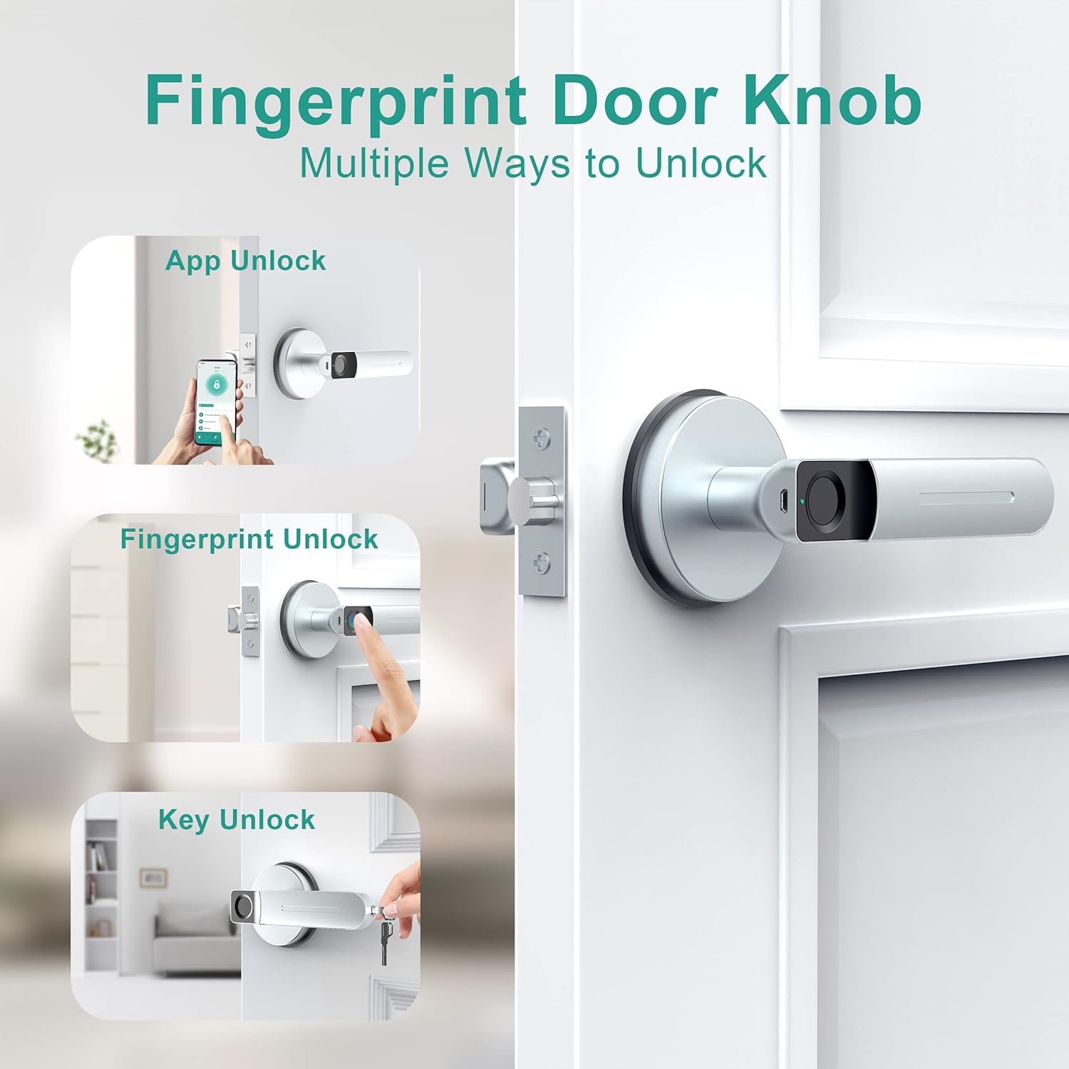 【Multiple Ways to Unlock】Advanced 3-in-1 fingerprint door lock: fingerprint unlock, App control, emergency back-up keys, a reliable fingerprint door knob to get keyless entry interior door lock