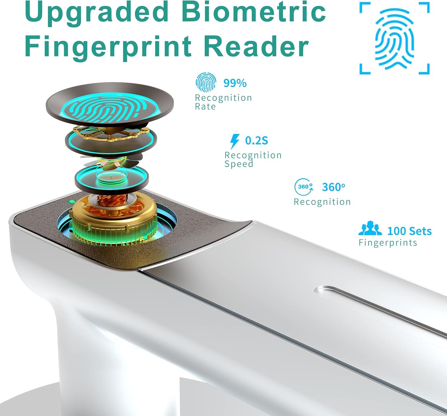【Upgrades Smart Fingerprint Door Lock 】 The biometric door lock is equipped with the upgraded 508 DPI fingerprint sensor module of 160 X 160 effective pixel, which translates to more than 99% recognition rate in 0.2 seconds. Faster and more convenient than using traditional key and more secure with your own unique biometric identification.